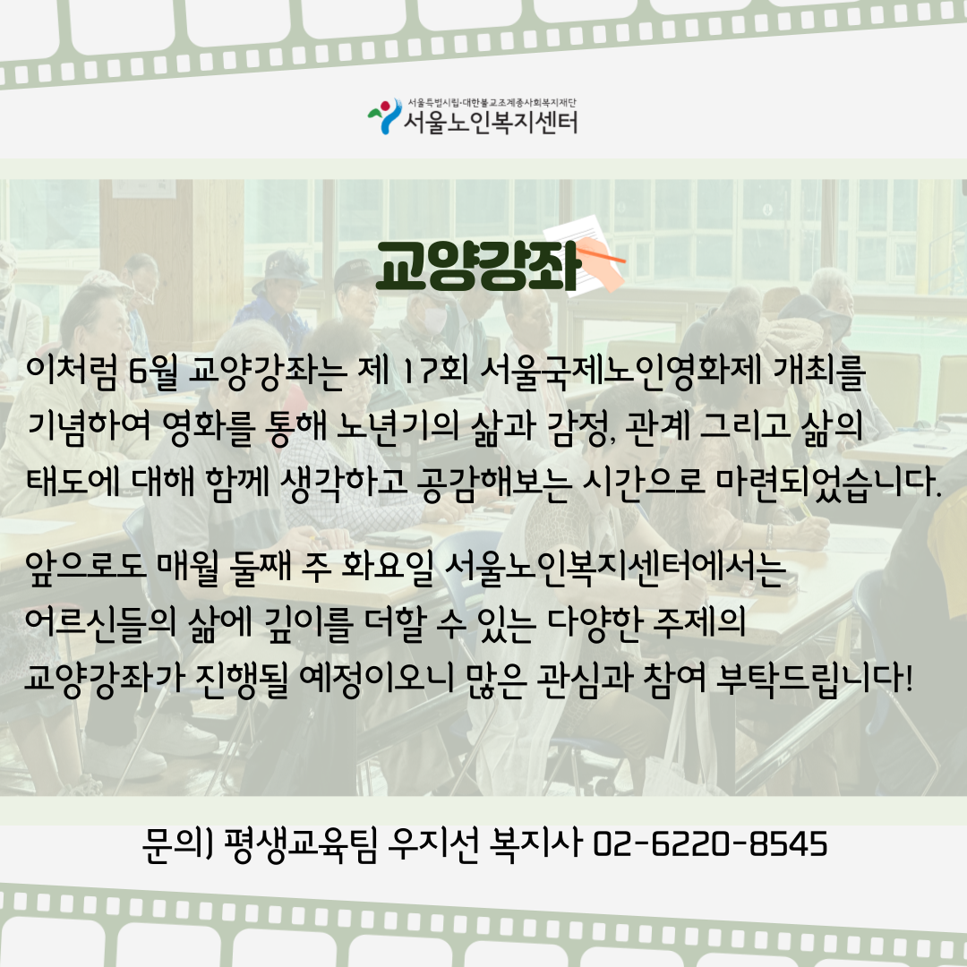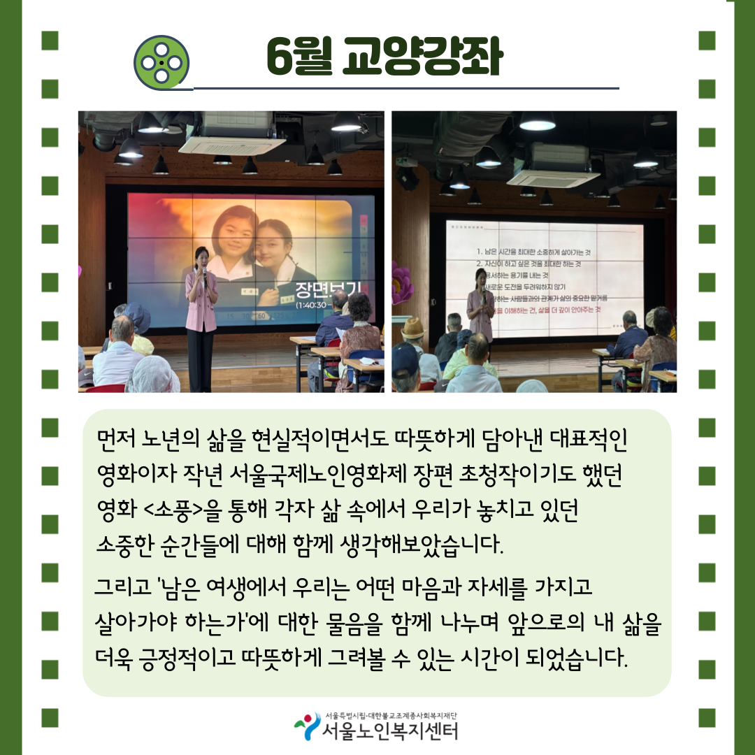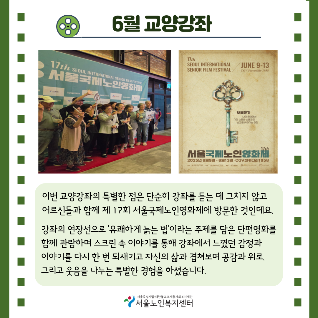 [평생교육팀] 6월 교양강좌 '내 인생의 명장면: 영화에서 인생의 보물을 찾다'