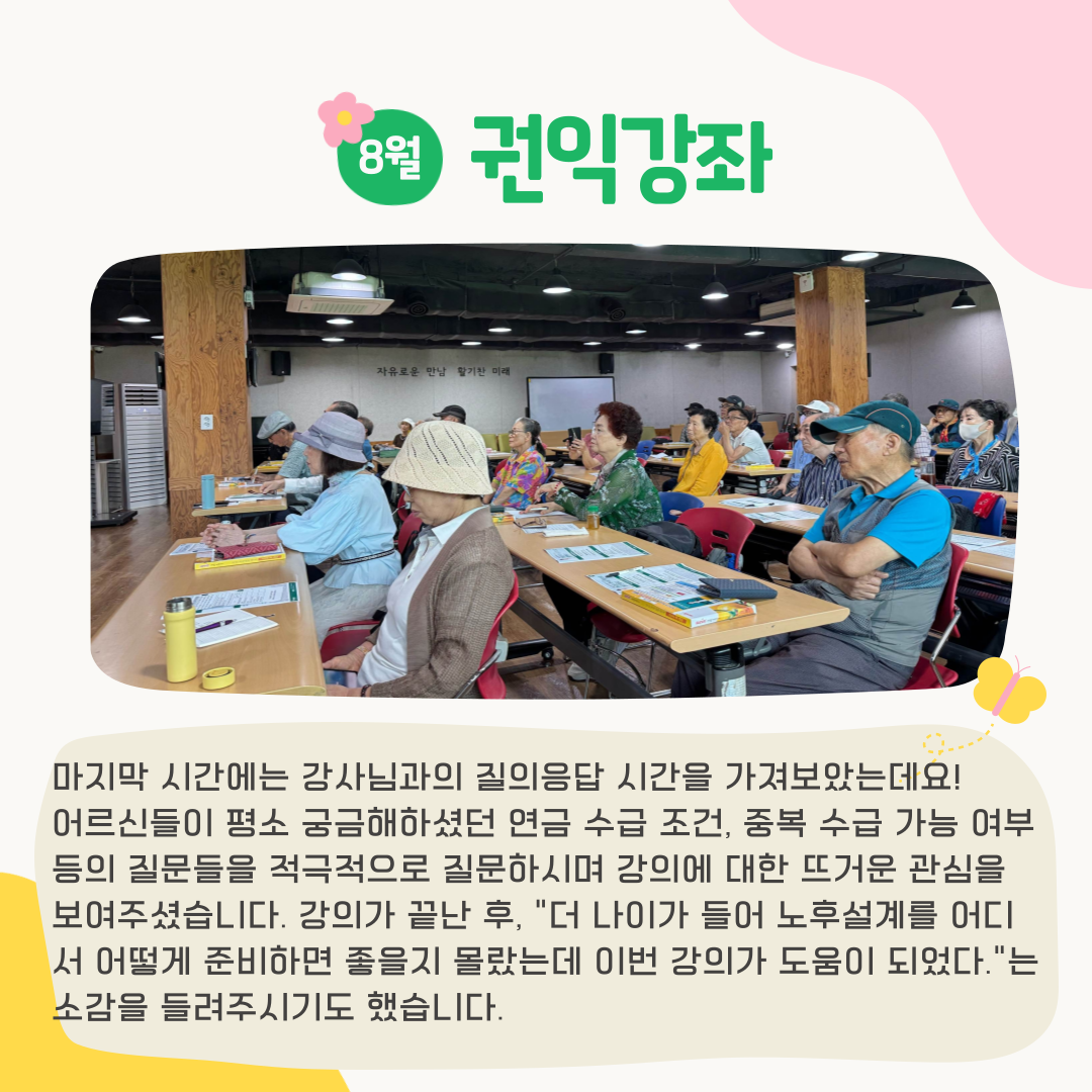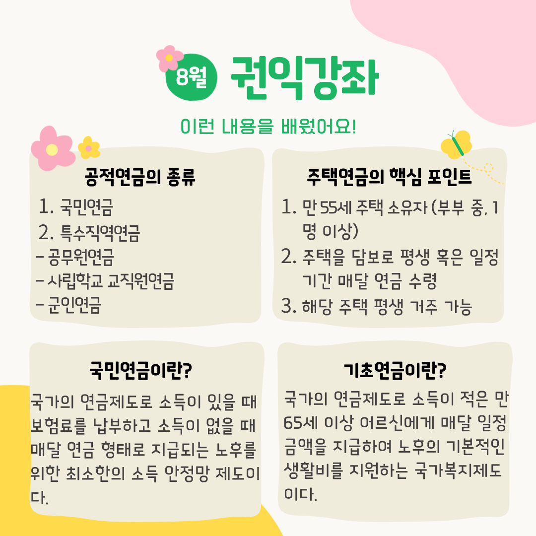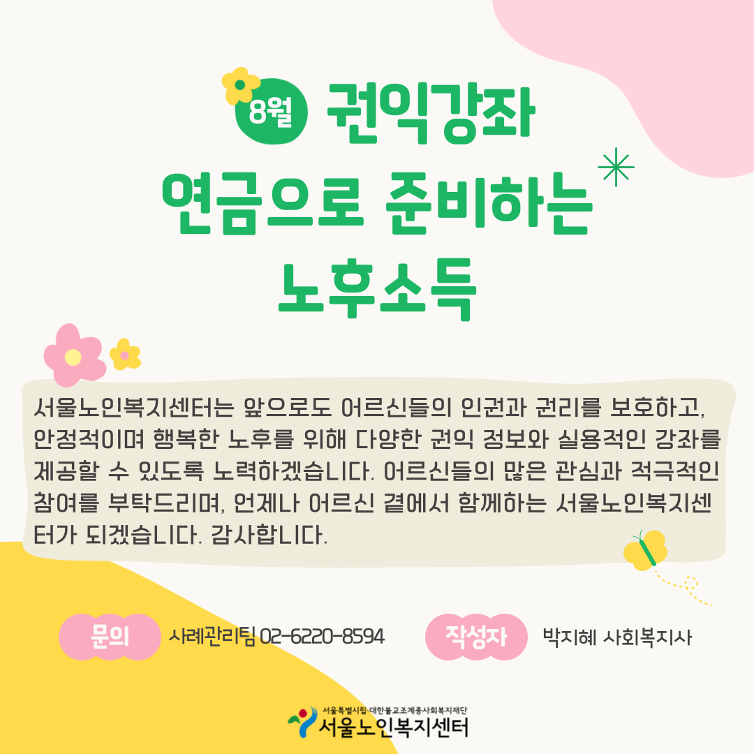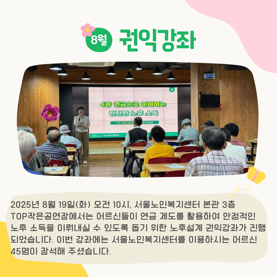 [사례관리팀] 2025년 8월 권익강좌 '연금으로 준비하는 노후소득'