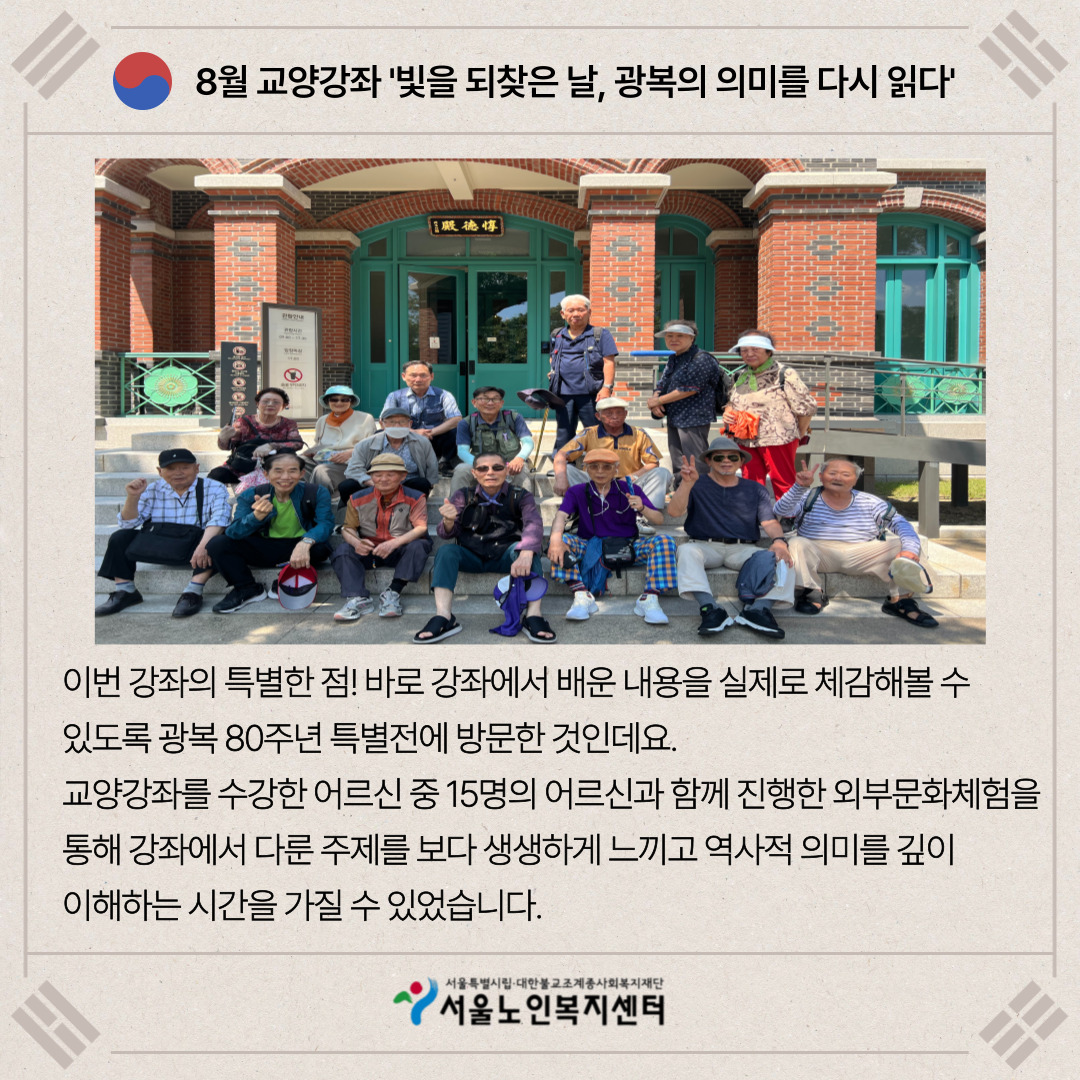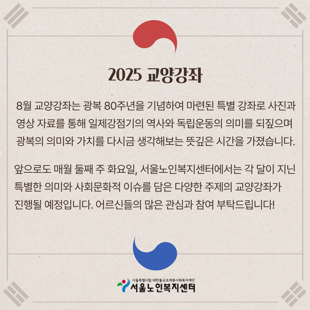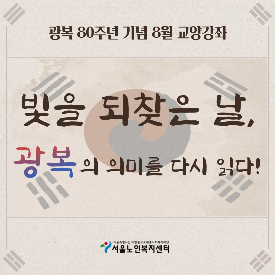 [평생교육팀] 광복 80주년 기념 8월 교양강좌 '빛을 되찾은 날, 광복의 의미를 다시 읽다!'