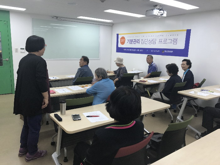 일상에서의 우울감 완화를 위한 기분관리 집단상담 프로그램이 진행되었습니다. 6명의 어르신과 노년행복컨설턴트 봉사자 6명이 1:1로 6개팀을 이뤄 우울감의 원인과 내담자 자신의 강점을 알아보고 신체/정서/사회적 활동을 시행하고 점검함으로서 우울감을 효과적으로 개선하고자 합니다. 기분관리 집단상담 프로그램은 총 6회기로 구성되어 있고 1회의 즐거운 활동이 추가되어 멘티어르신과 멘티봉사자가 여러가지 면에서 기대감을 갖고 참여할 예정입니다.