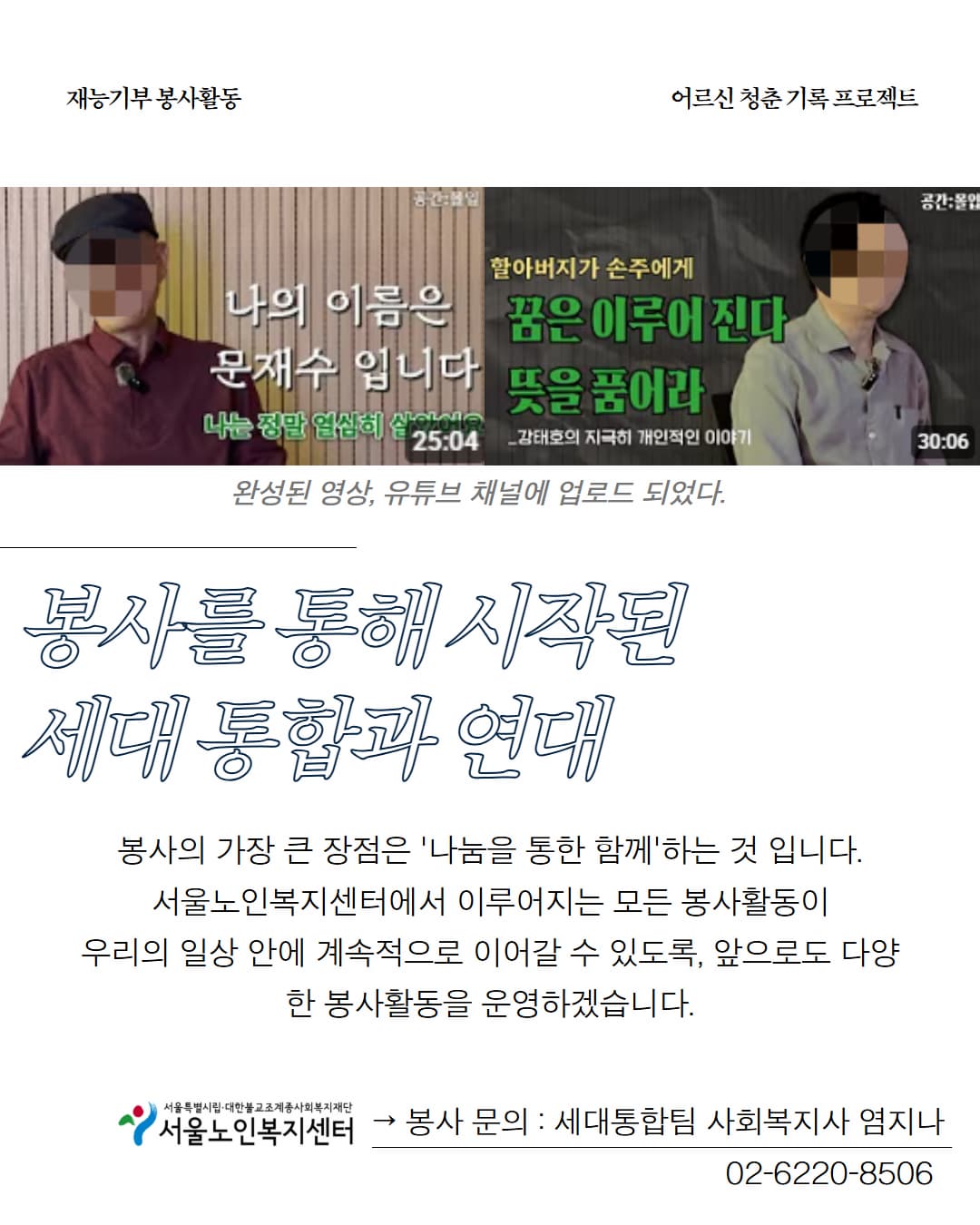 [세대통합팀] 어르신 청춘 기록 프로젝트_재능기부 봉사활동