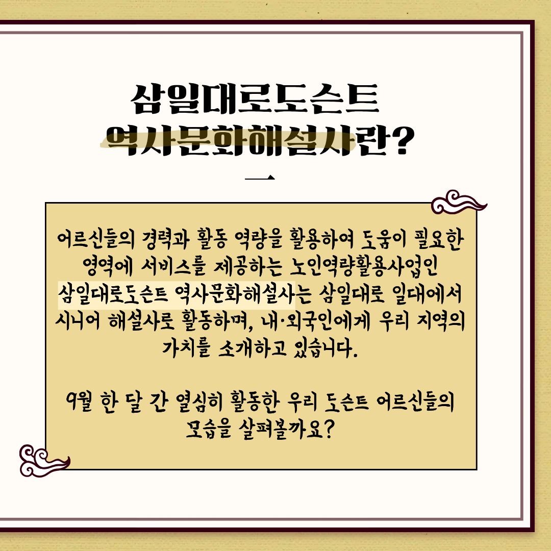 [지역복지팀] 노인역량활용사업 삼일대로도슨트 역사문화해설사 9월 활동 소식