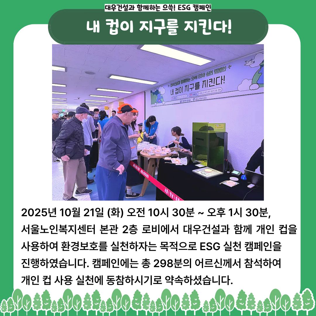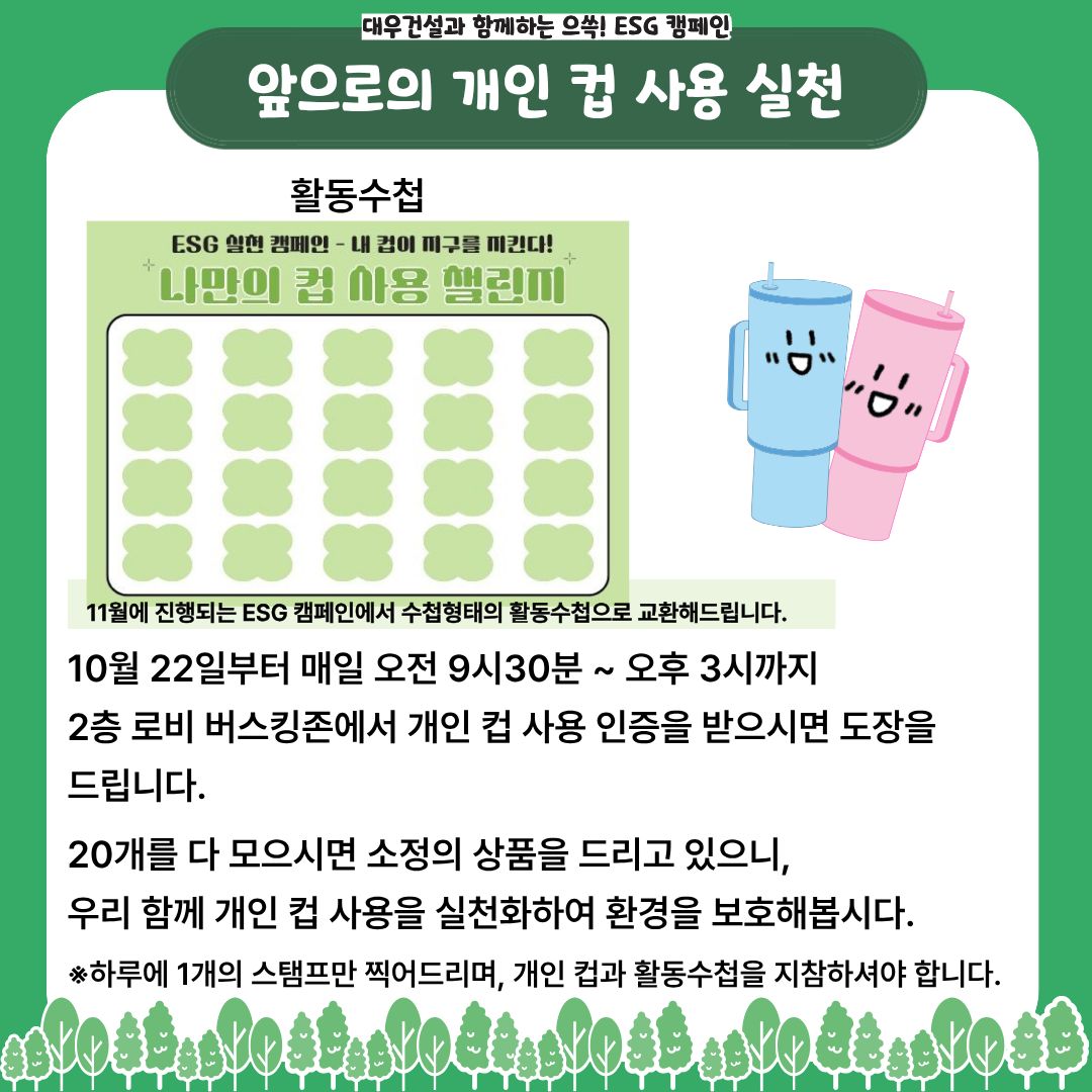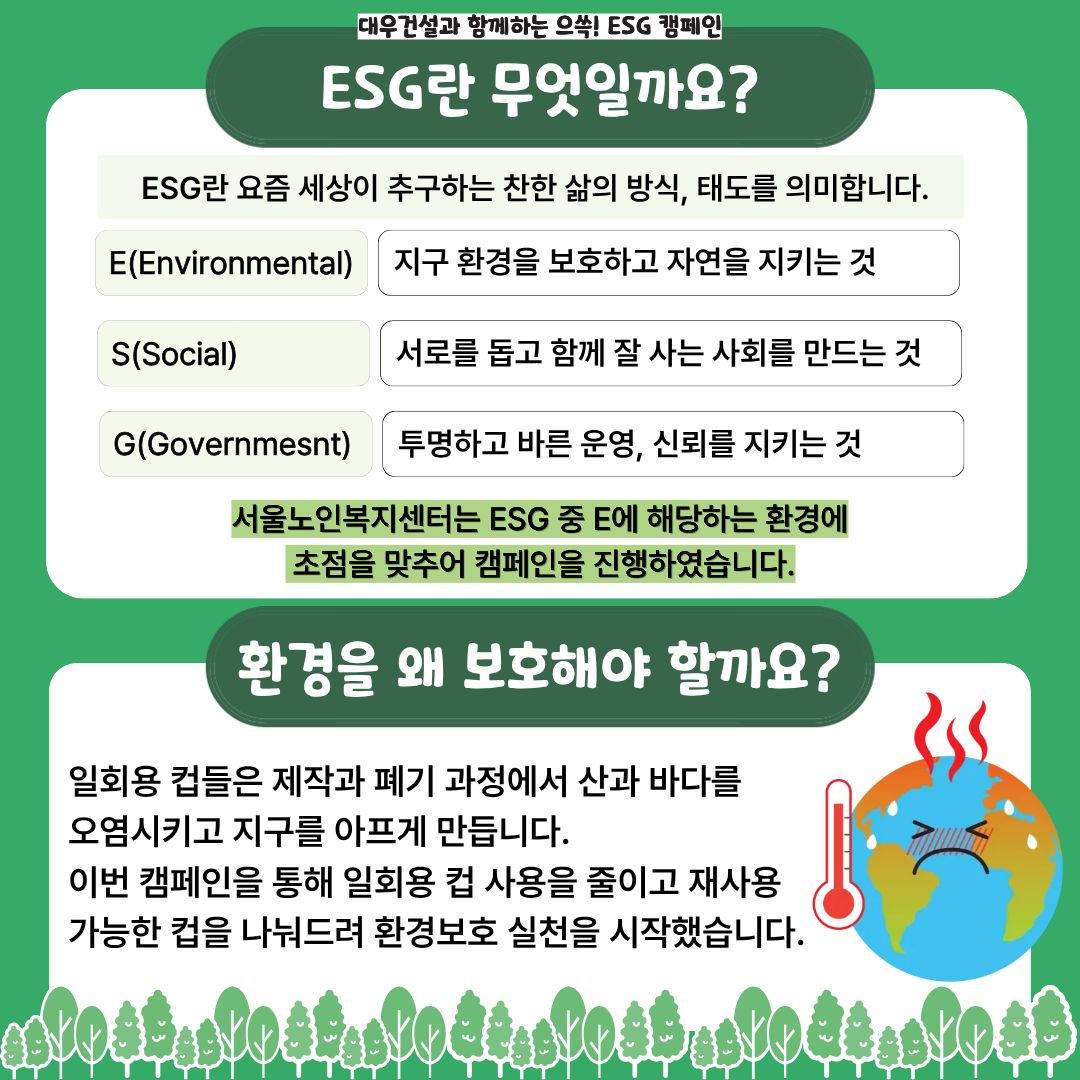 [사례관리팀] 대우건설과 함께하는 으쓱! ESG 실천 캠페인 '내 컵이 지구를 지킨다!'