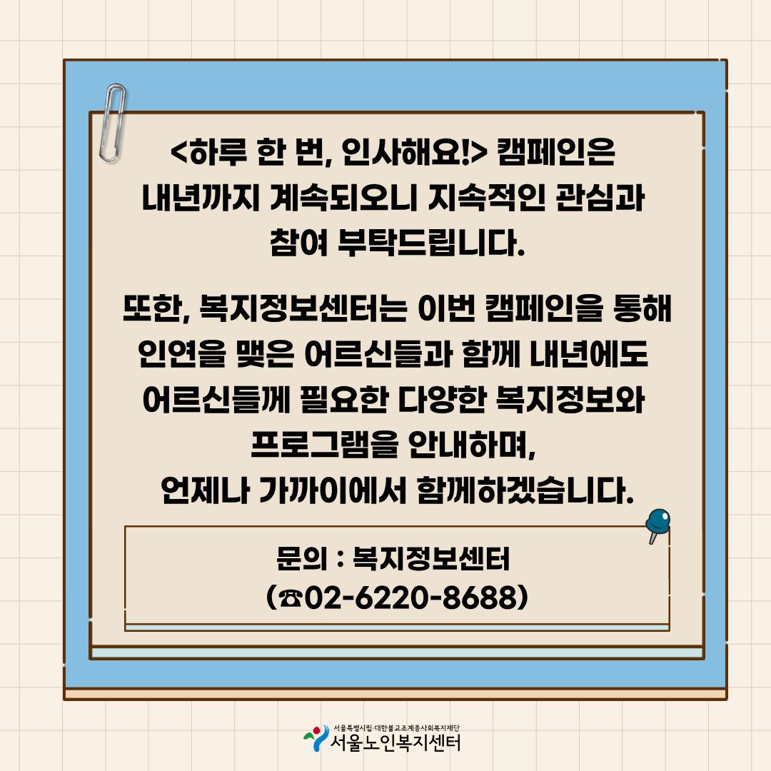 [지역복지팀] 복지정보센터와 함꼐하는 <하루 한 번, 인사해요!> 캠페인