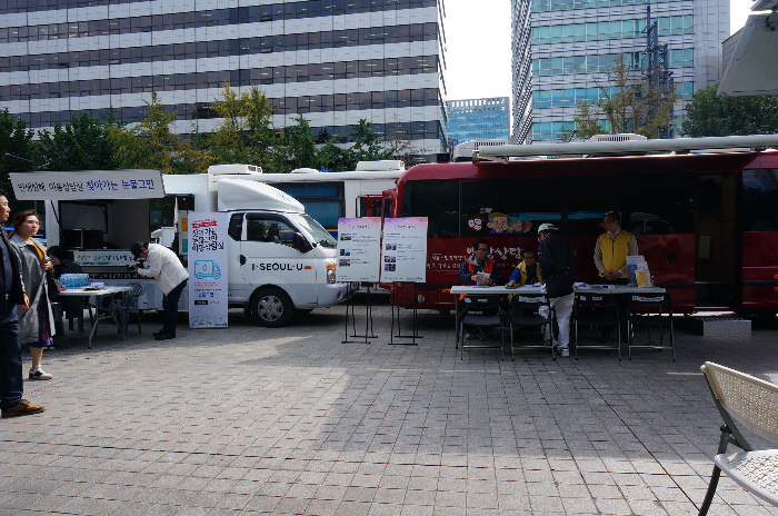 많은 어르신들께서 상담버스에 대하여 관심을 보이셨으며, 서울시에서 운영하는 찾아가는 상담 '눈물그만'도 옆에서 함께 진행되었습니다.