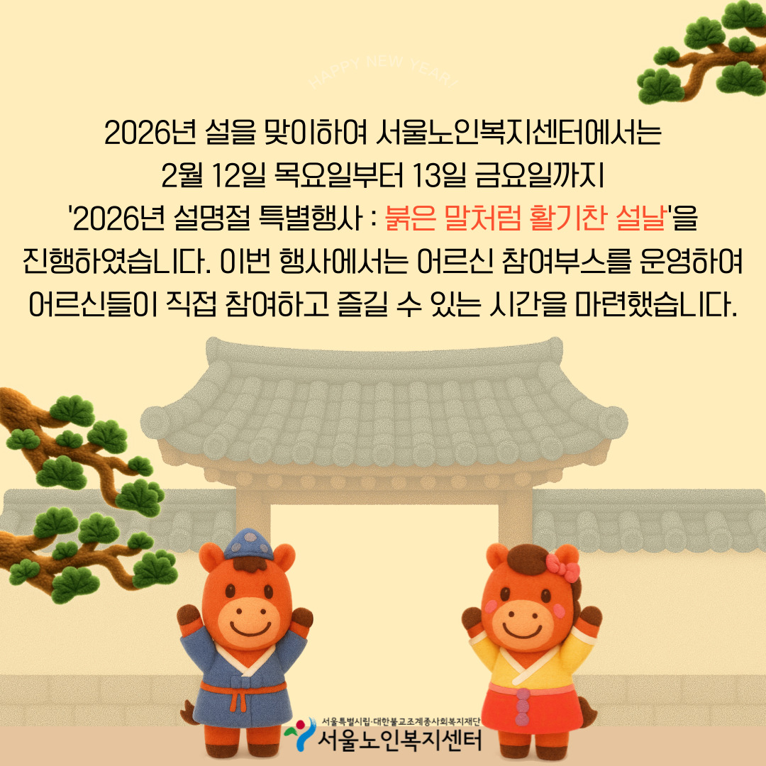 [평생교육팀] 2026년 설명절 특별행사 '붉은 말처럼 활기찬 설날' 체험 부스 운영