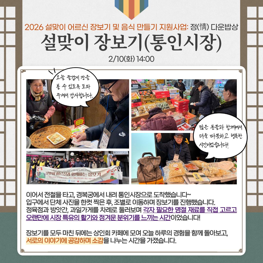 [사례관리팀] 2026 설맞이 어르신 장보기 및 음식 만들기 지원사업: 정(情)다운 밥상