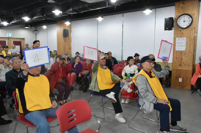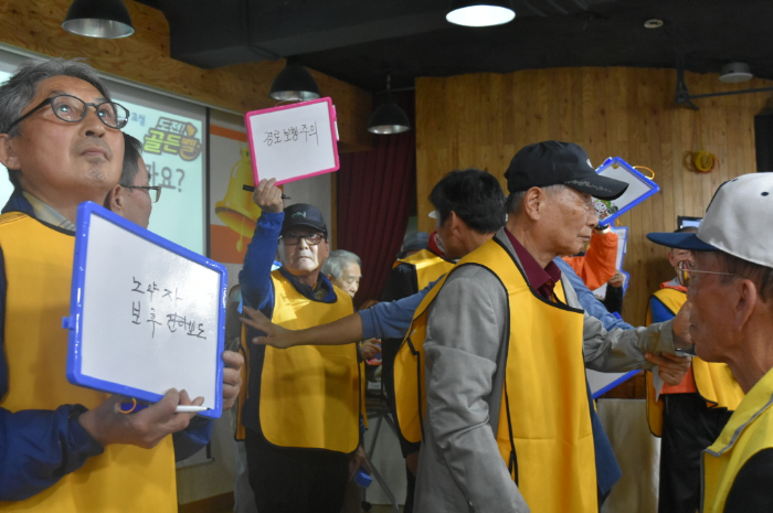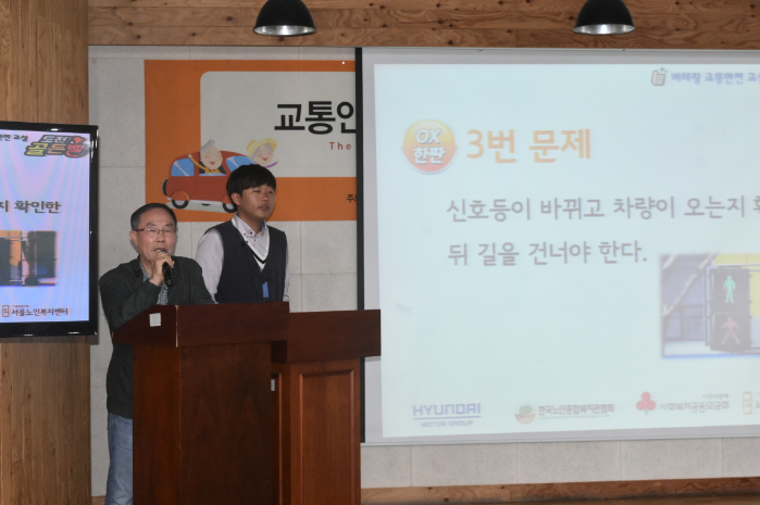 지난 10.18(수) 서울노인복지센터 3층 탑작은공연장은 교통안전 베테랑교실 도전 골든벨 대회가 열려 선배시민의 뜨거운 열정으로 넘쳐 났다.
