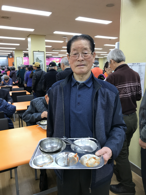 잔반 제로! 식판을 깨끗하게 비우신 어르신 모습입니다.