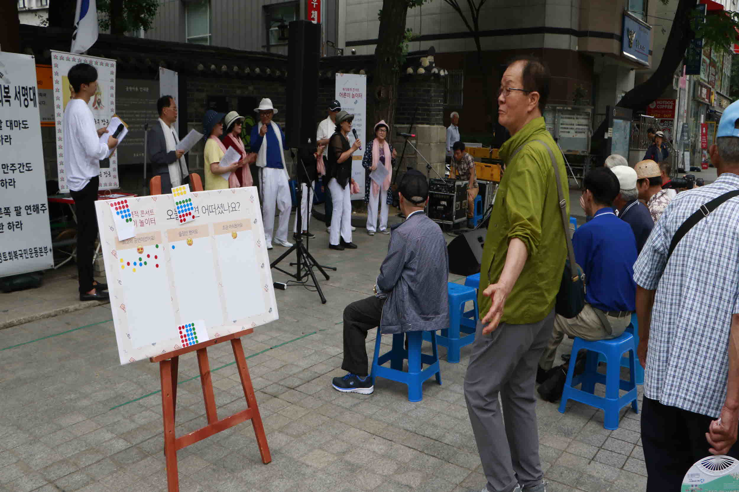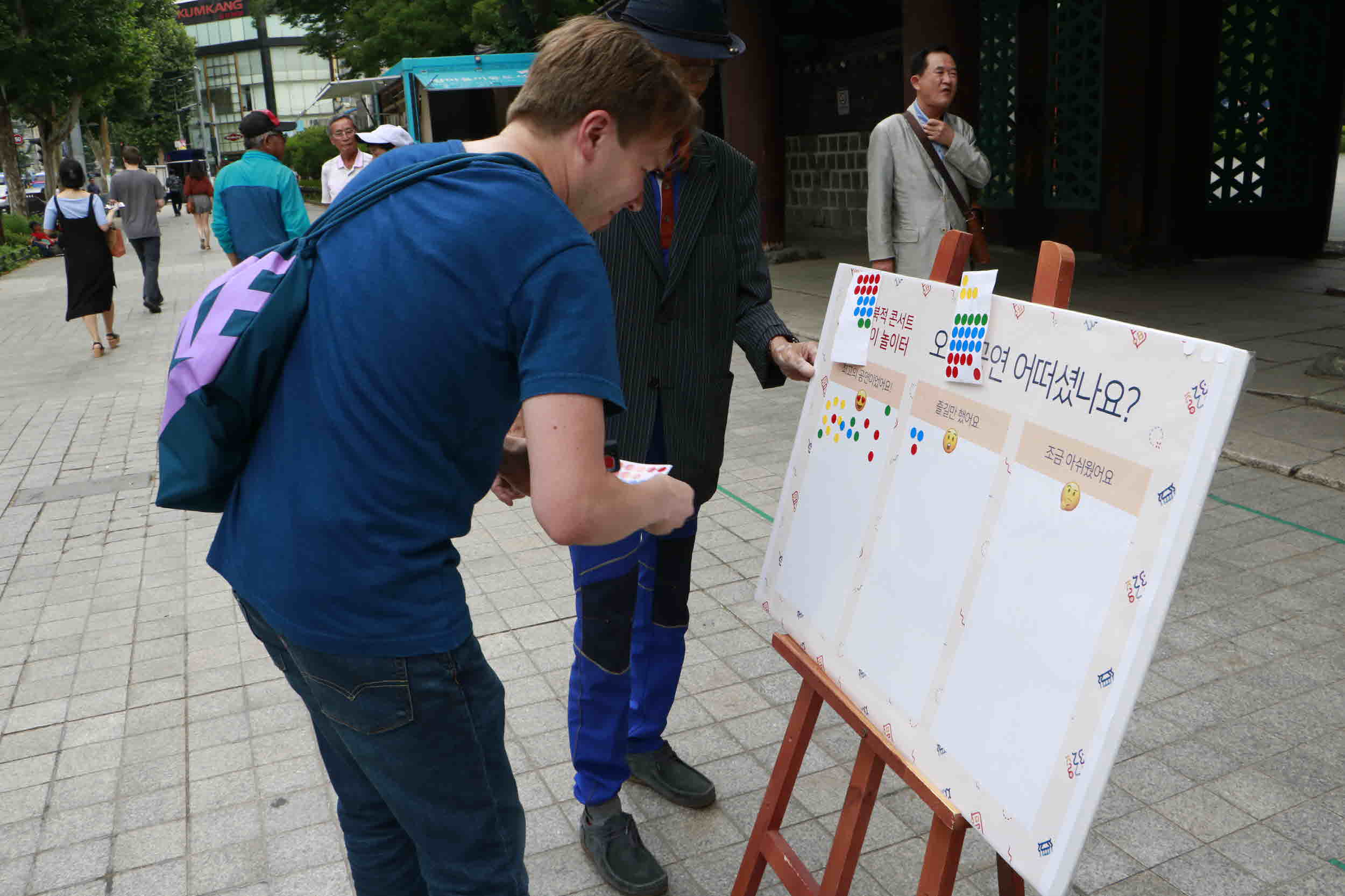 또한, 중간중간 공연에 대한 지역사회의 외국인 관광객, 일반시민, 어르신들이 공연에 대한 만족을 스티커로 평가해주시기도 하였습니다.