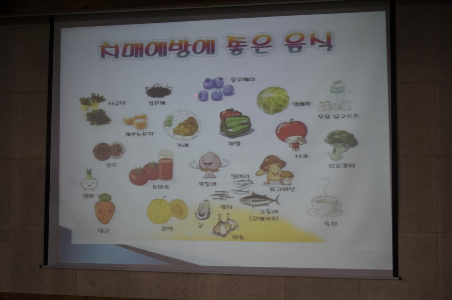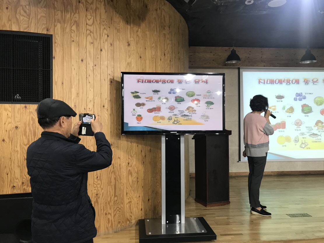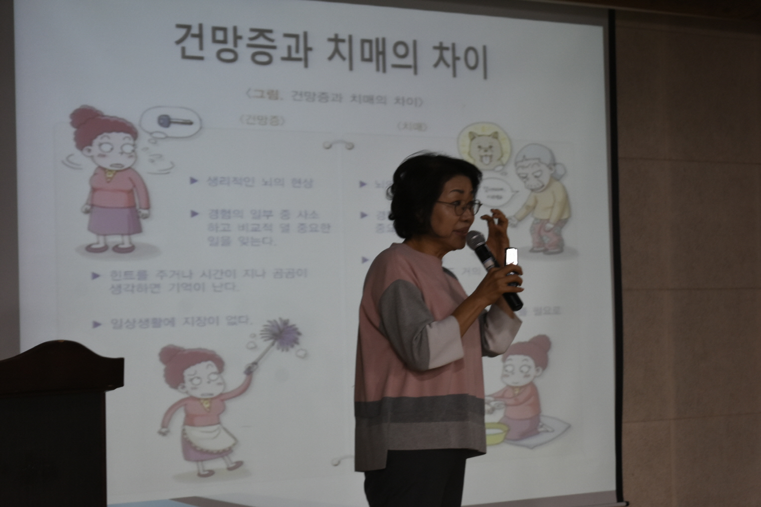 강의는 치매의 종류와 원인, 치매 예방에 좋은 음식, 치매예방을 위한 식생활 지침,