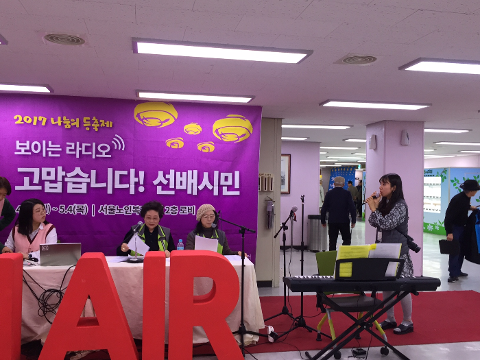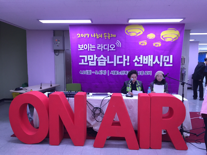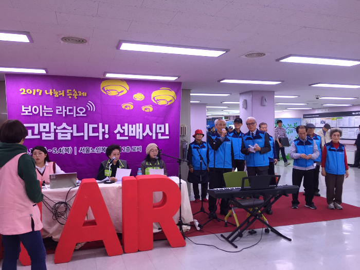 또 다른 소식으로는 건강지킴이입니다. 저희 서울노인복지센터에서는 4월 10일(월)부터 5월4일(목)까지 ‘보이는 라디오-고맙습니다, 선배시민’이 본관2층 로비에서 진행되고 있습니다.