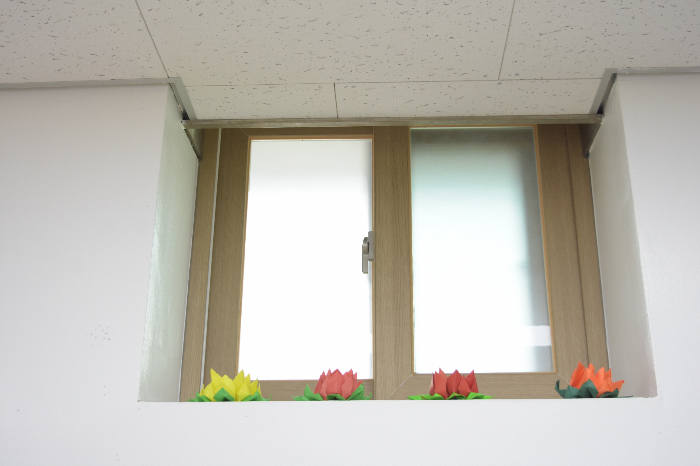 교실 창가에 핀 연꽃이 마치 치매예방에 대한 어르신의 열정과 같습니다.