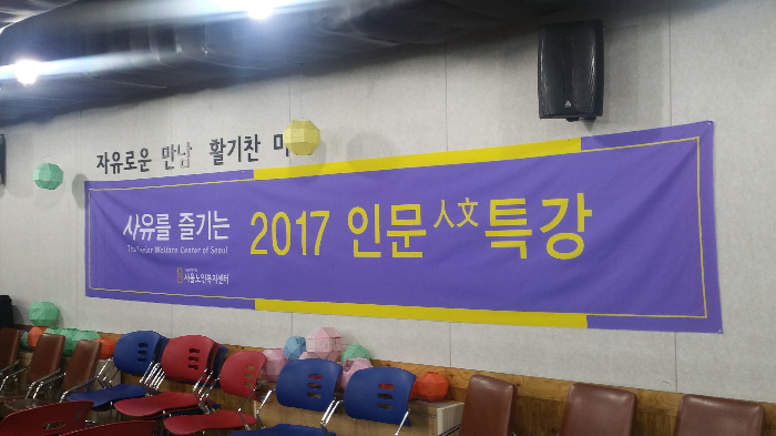 매 월 인문특강을 진행을 진행하고 계시는 김진영 교수((사)철학아카데미)는 그런 어르신들을 보시며 빙긋 웃으며 강의를 시작하셨습니다.