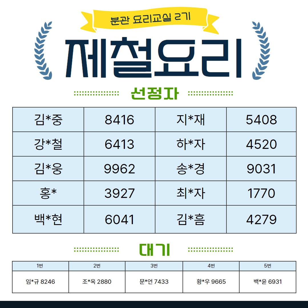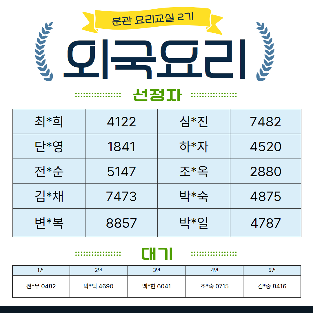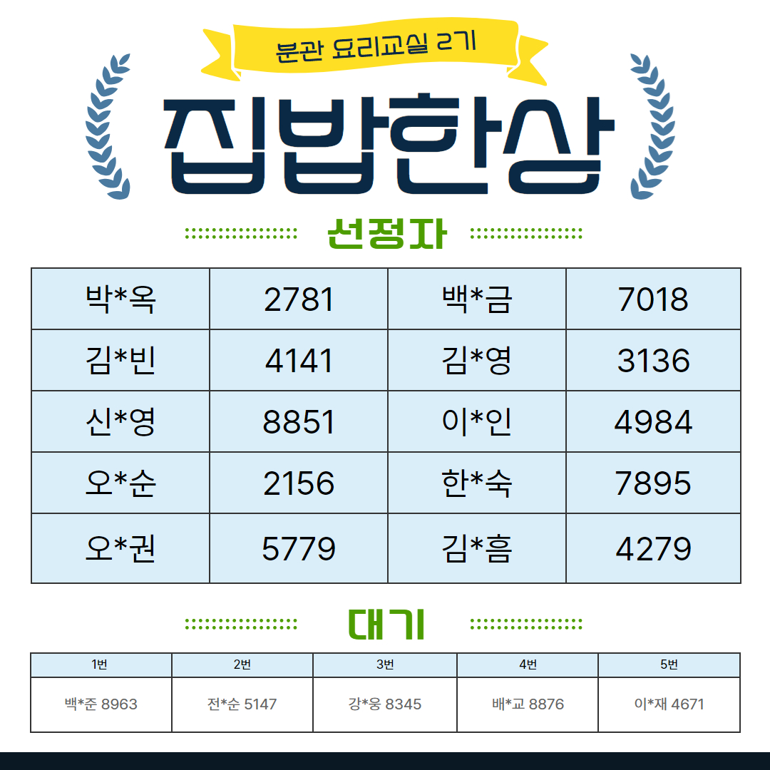 2025년 분관 요리교실 2기 선정자 발표