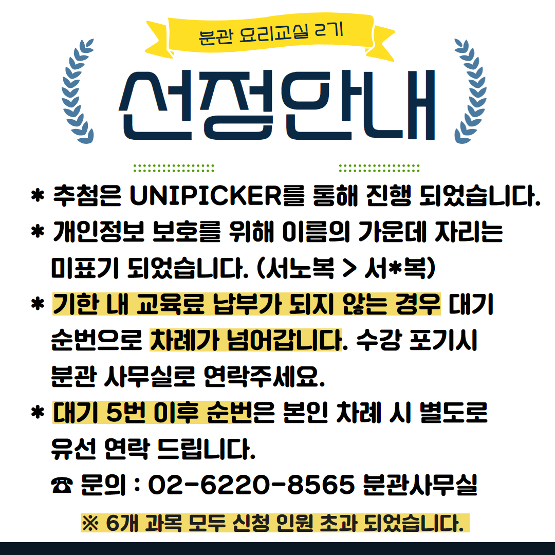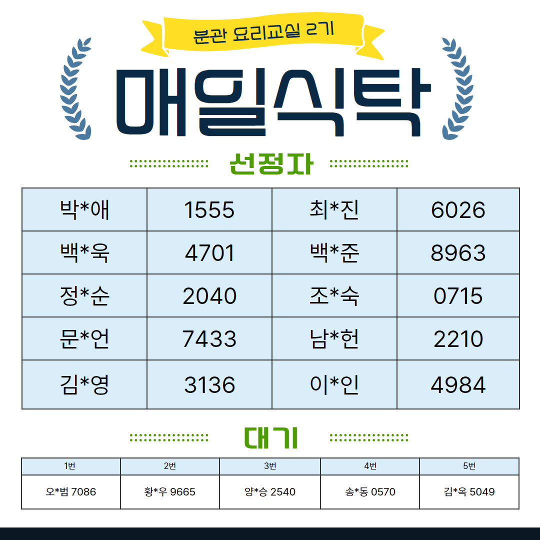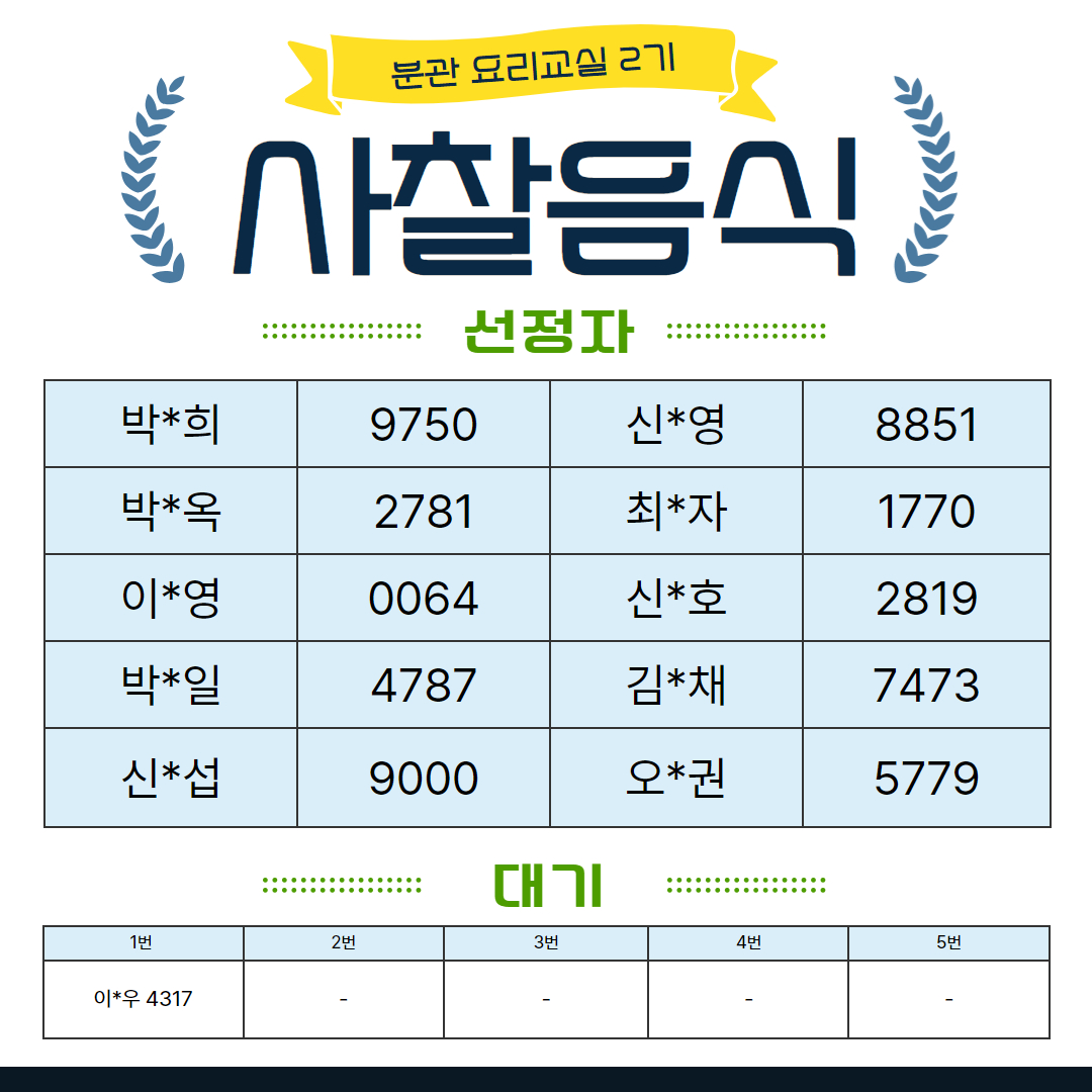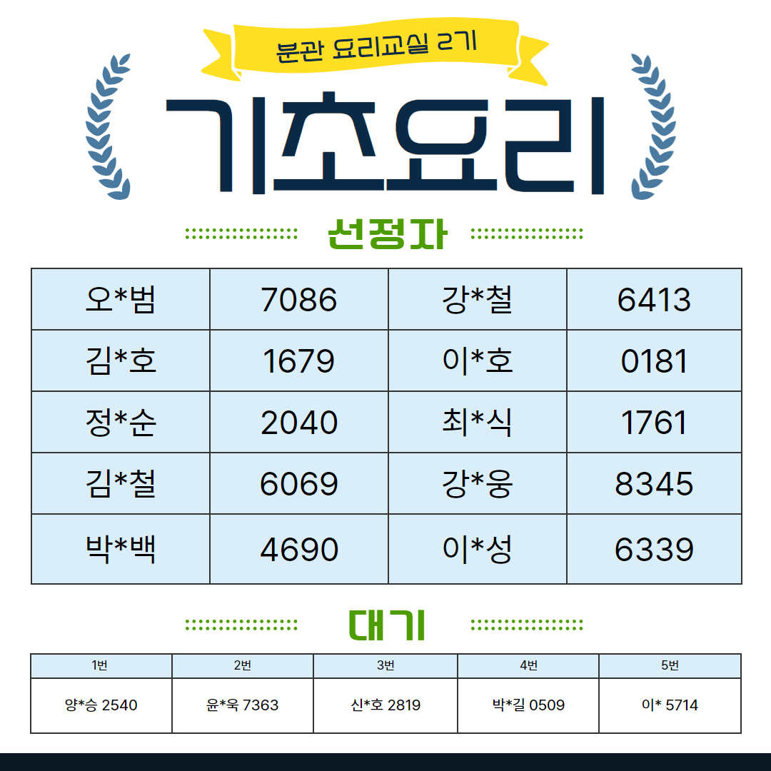 2025년 분관 요리교실 2기 선정자 발표