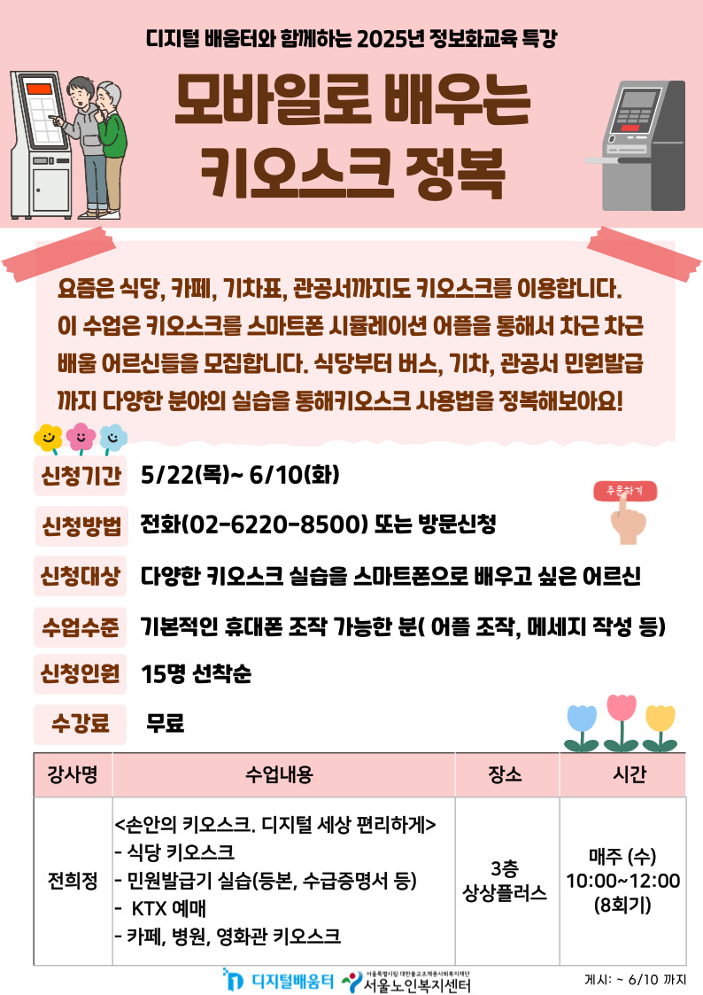 [평생교육팀] 정보화교육 특강 '모바일로 배우는 키오스크 정복' 참여자 모집 안내