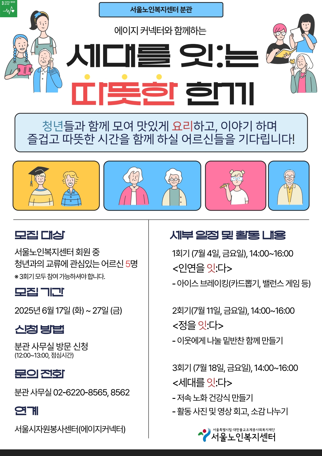 [분관] 에이지 커넥터와 함께하는 <세대를 잇는 따뜻한 한끼> 참여자 모집