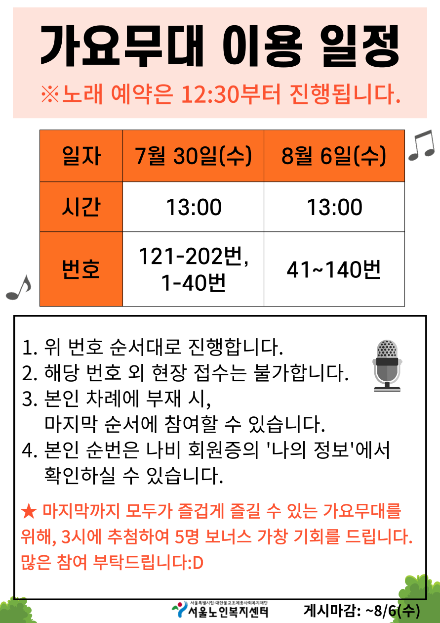 [평생교육팀] 2025 가요무대 이용일정(7/30, 8/6)