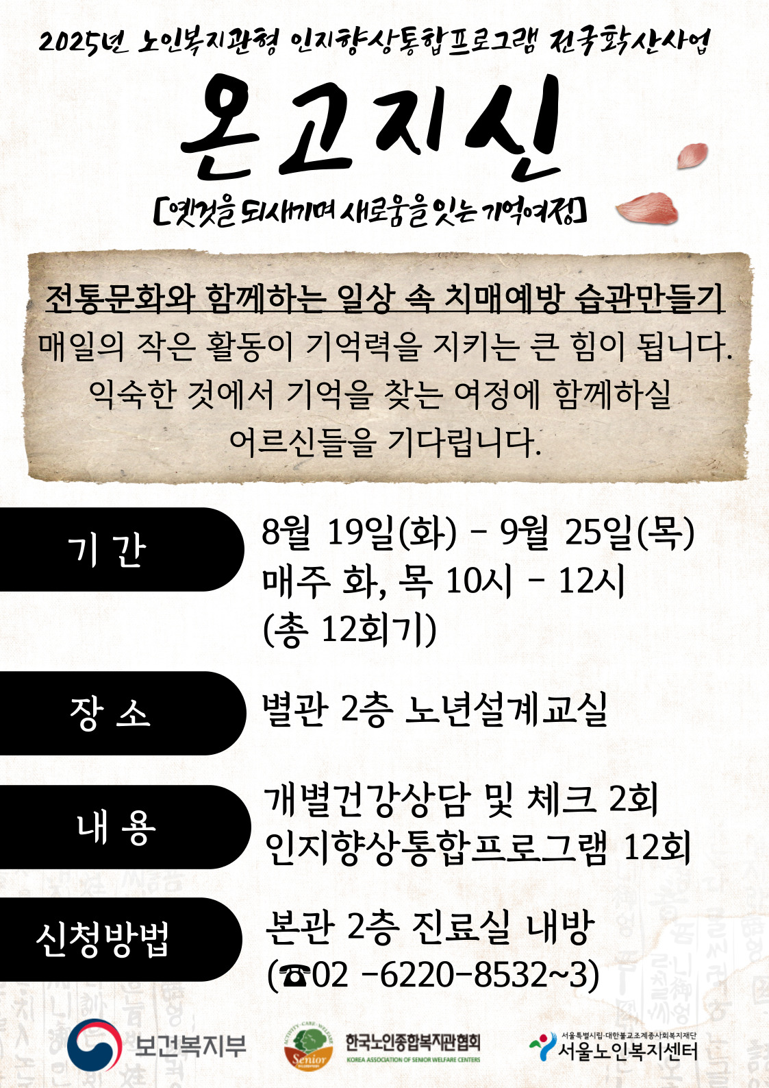 [의료건강팀] 인지향상통합프로그램 <온고지신> 참여자를 모집합니다.