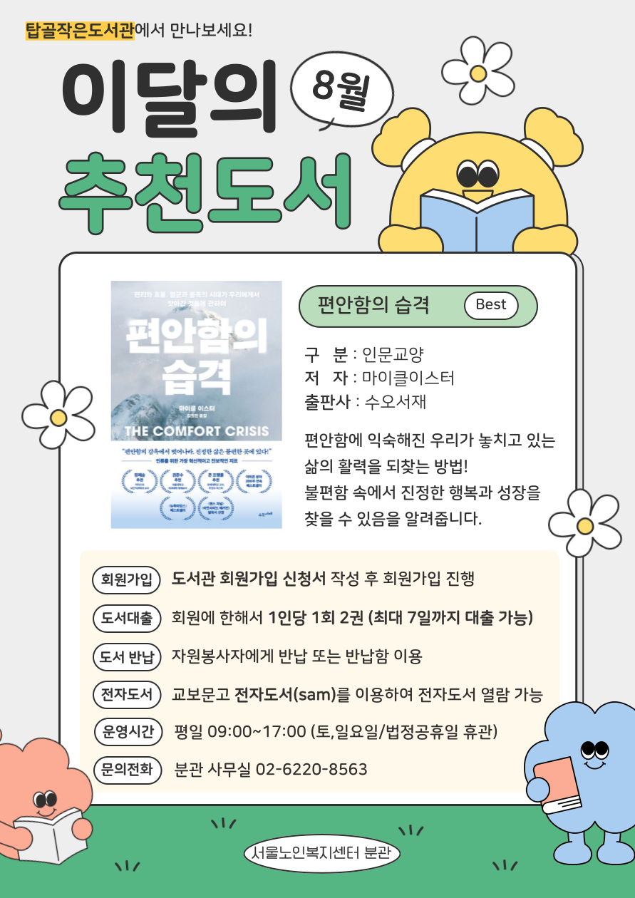 [분관] 탑골작은도서관 8월 이달의 추천도서