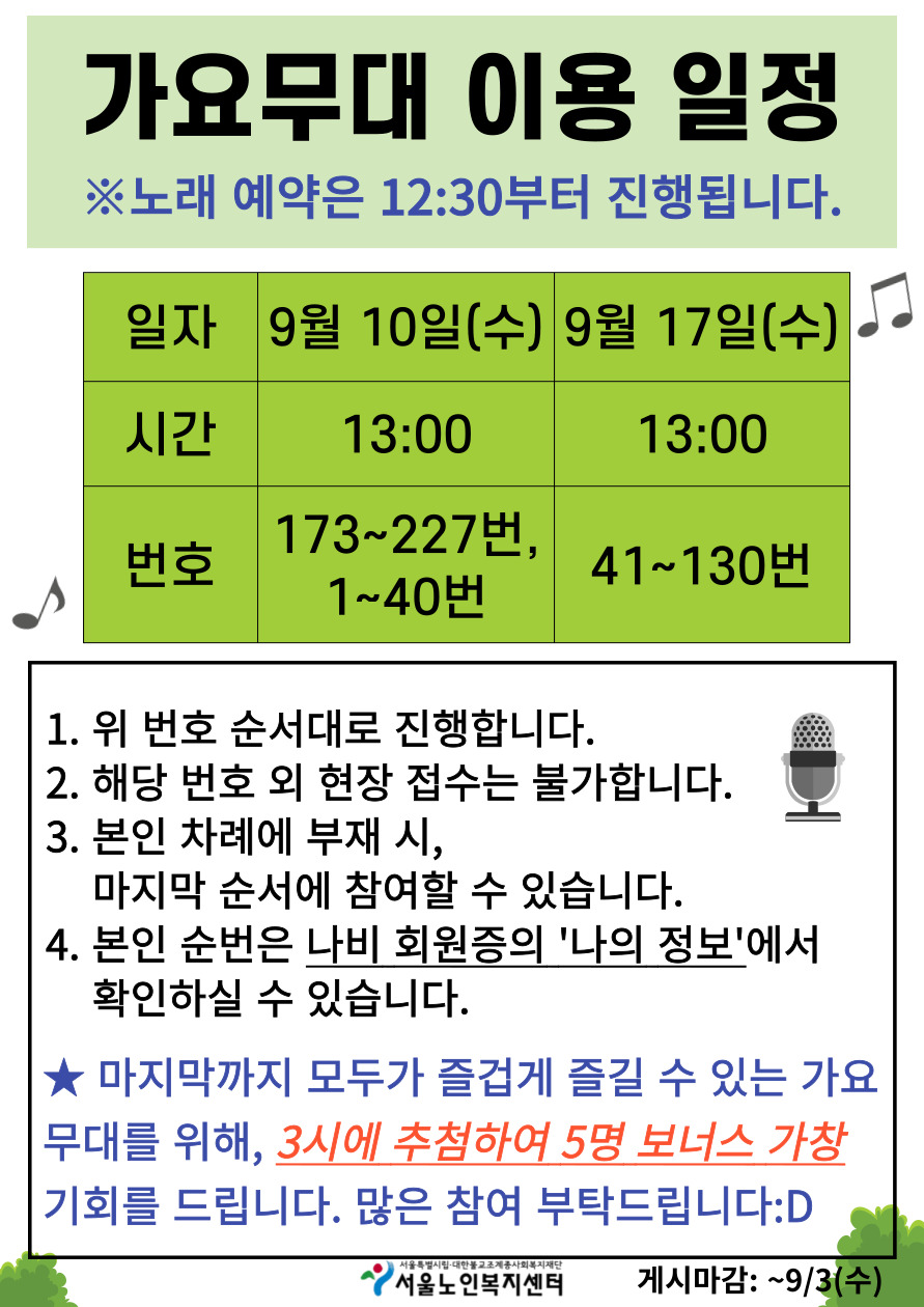 [평생교육팀] 2025 가요무대 이용일정(9/10, 9/17)