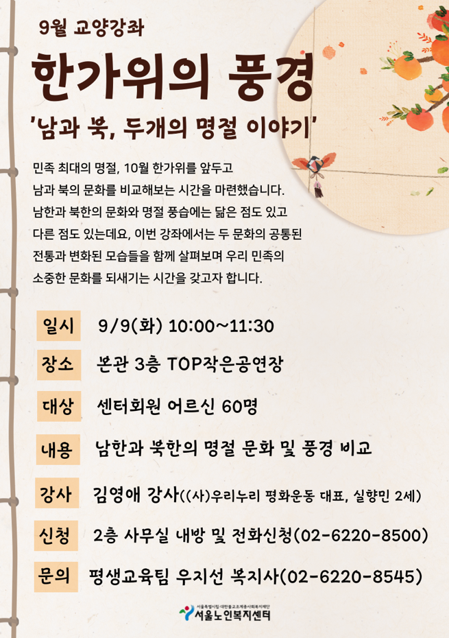 [평생교육팀] 9월 교양강좌 '한가위의 풍경: 남과 북, 두개의 명절 이야기'