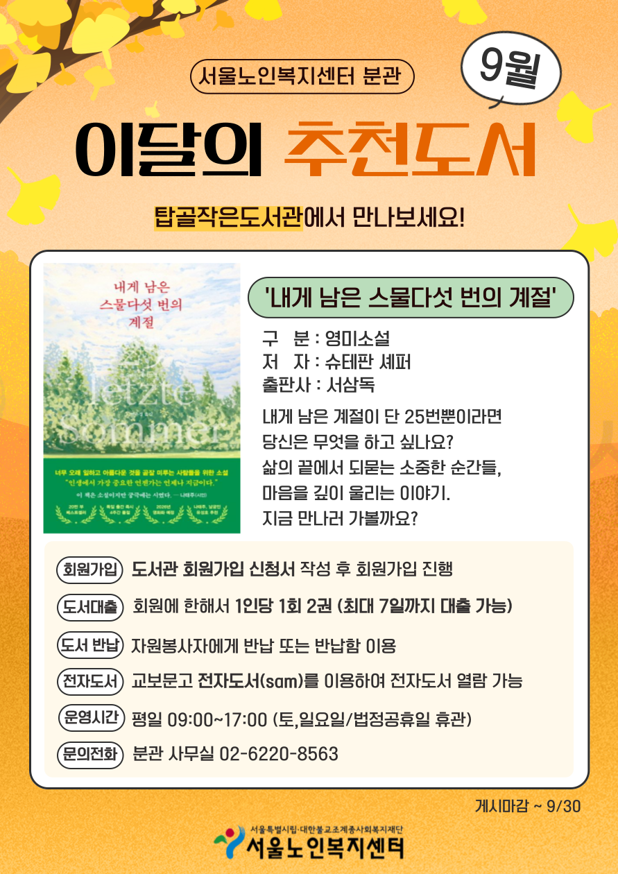 [분관] 탑골작은도서관 9월 이달의 추천도서