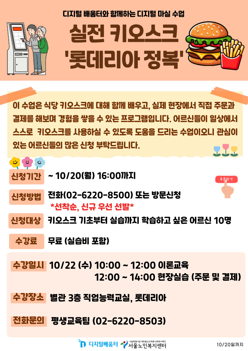 [평생교육팀] 디지털 배움터 연계 키오스크 실습 수업 참여자 모집 안내