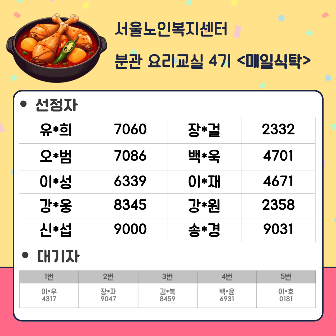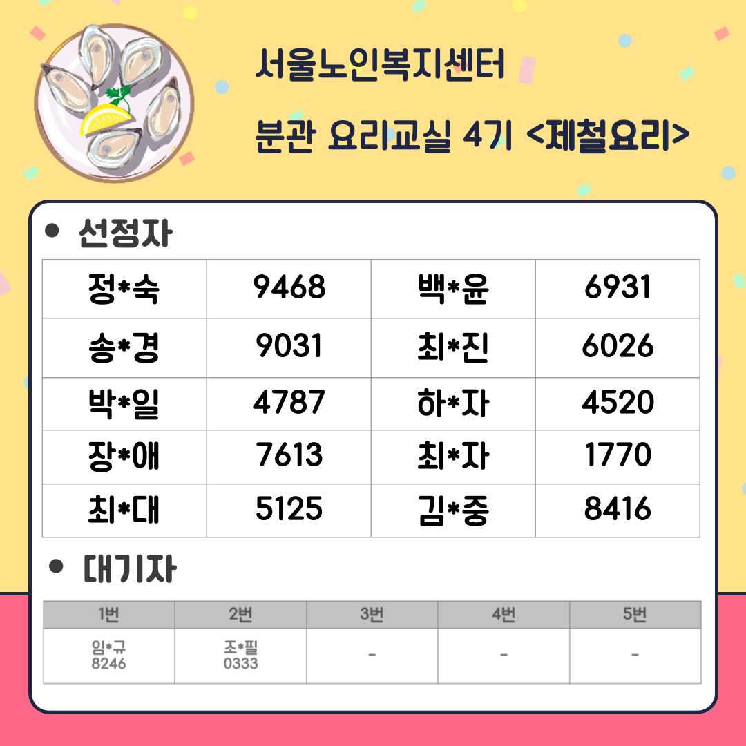 [교육여가문화팀] [분관] 요리교실 4기 선정자 안내