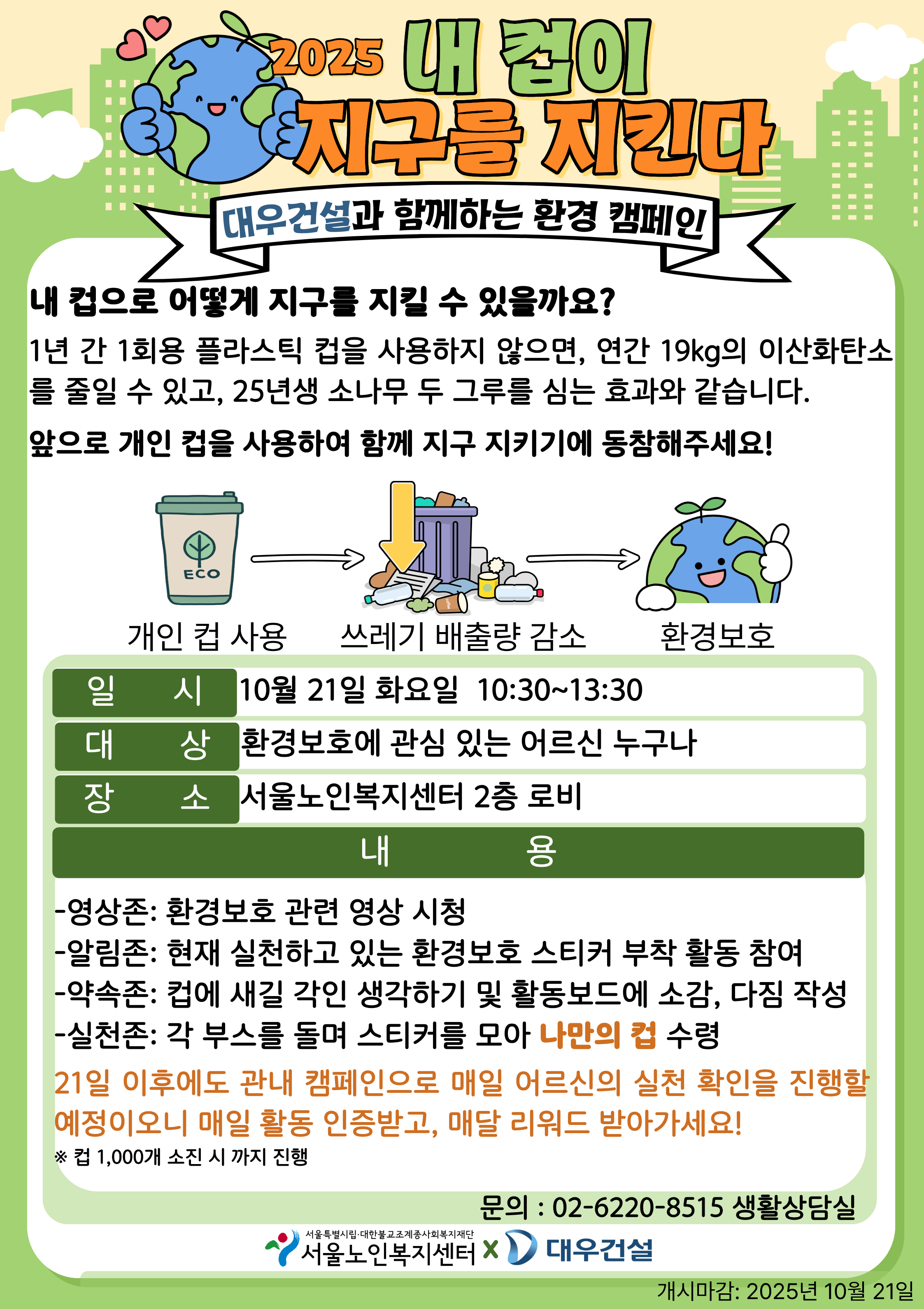 [사례관리팀] 2025년 10월 권익 캠페인 '대우건설과 함께하는 으쓱! ESG 실천 캠페인'_'내 컵이 지구를 지킨다!'