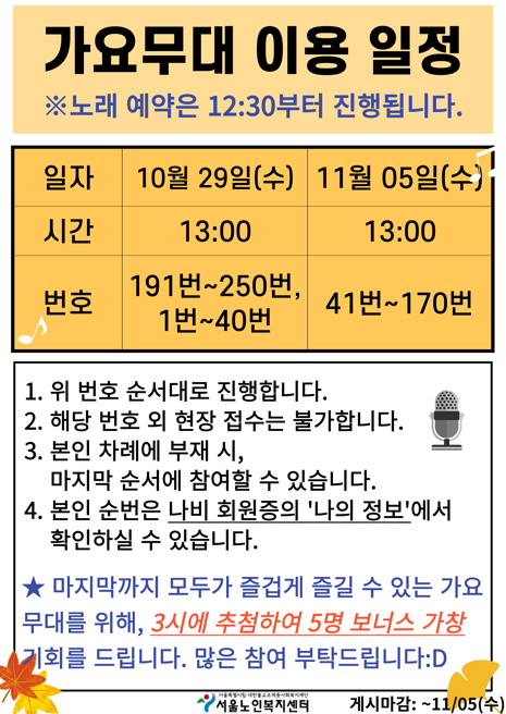 [평생교육팀] 가요무대 순번 공지(10.29-11.05)