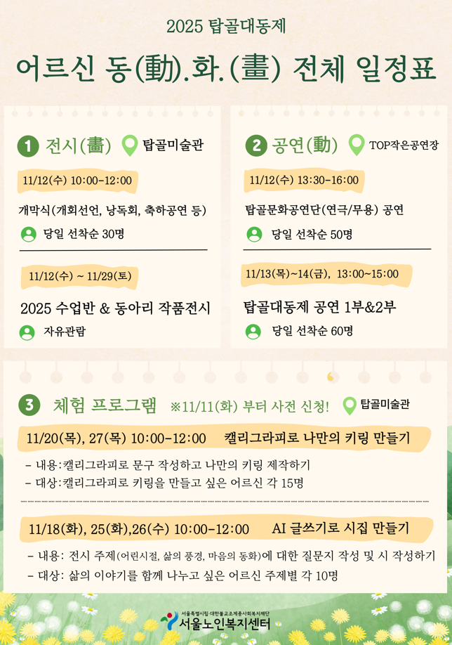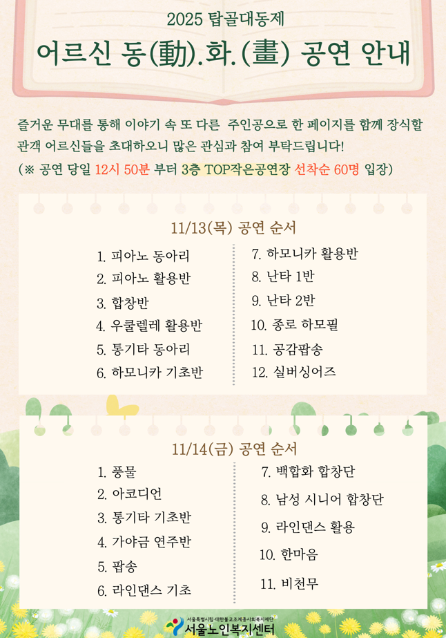 [평생교육팀] [평생교육팀] 2025 탑골대동제 '어르신 동화' 행사 일정 안내
