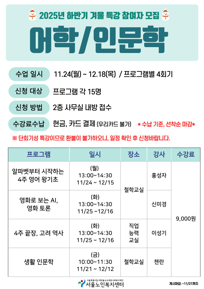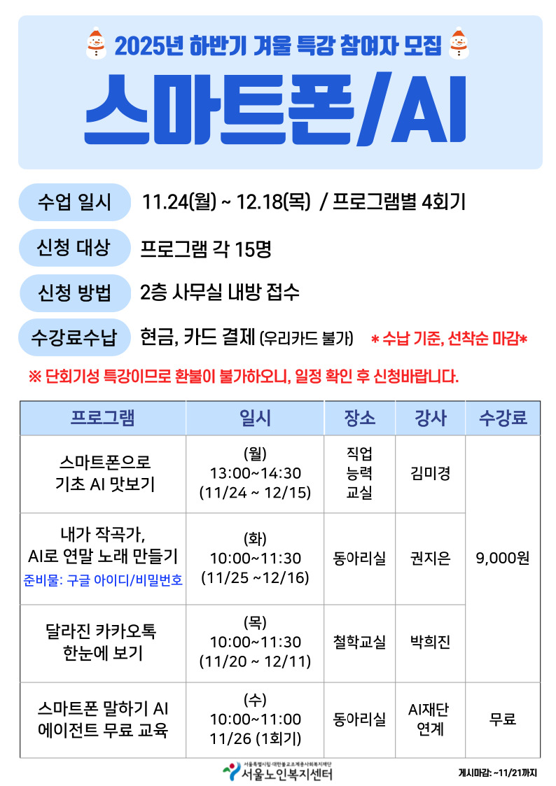 [평생교육팀] 평생교육, 정보화교육 특강 참여자 모집((취미여가/교양/정보화)