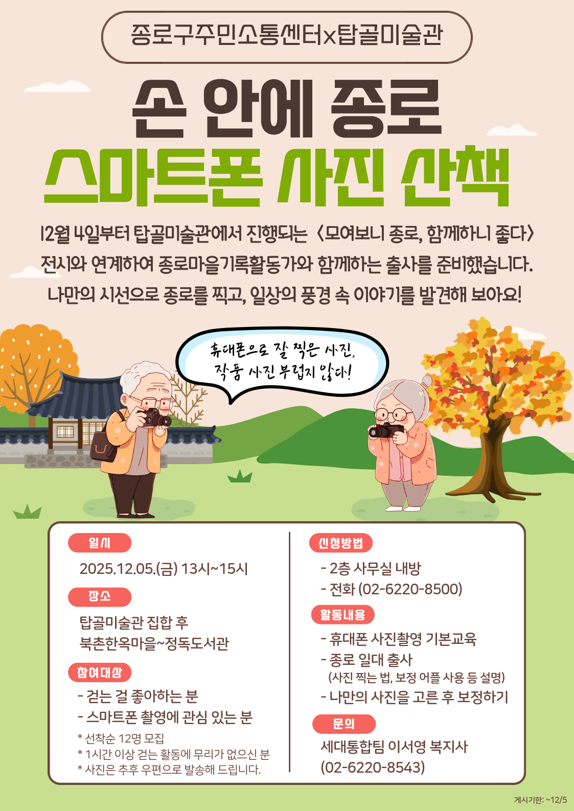 [세대통합팀] 탑골미술관 <종로좋다> 전시 연계프로그램 (스마트폰 출사) 참여자 모집