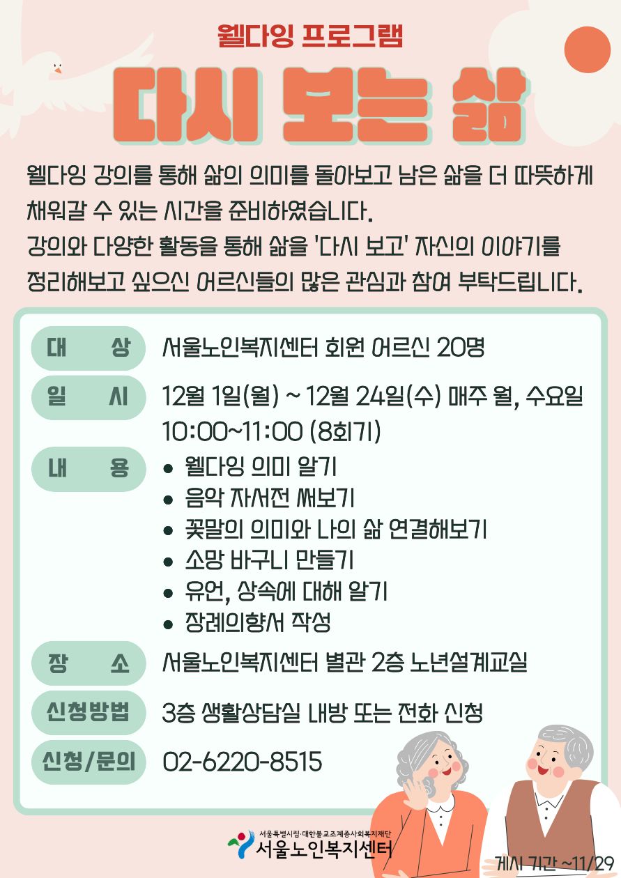 [사례관리팀] 웰다잉 프로그램 '다시 보는 삶' 참여자 모집
