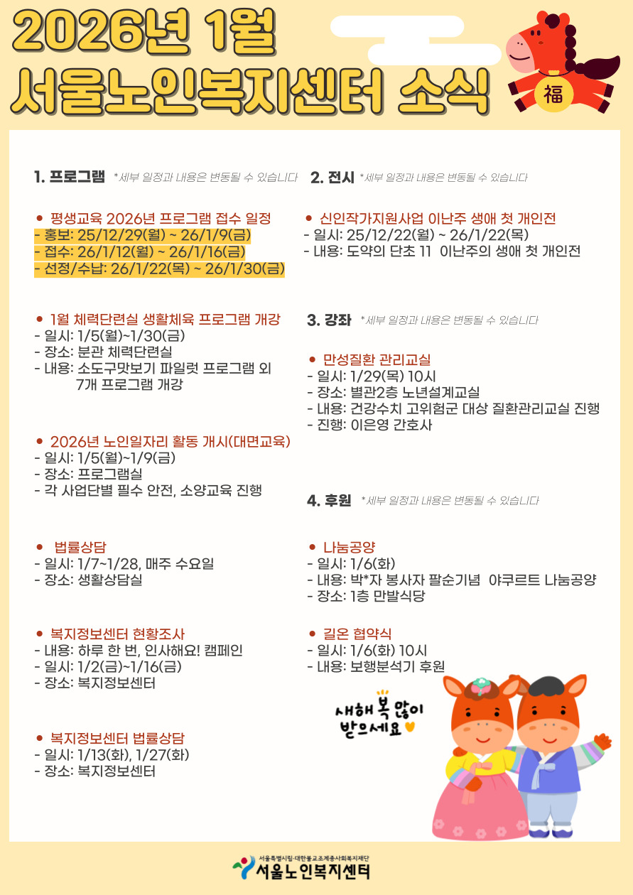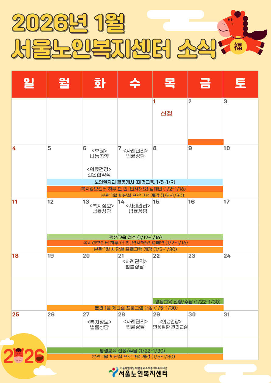 서울노인복지센터 1월 주요일정