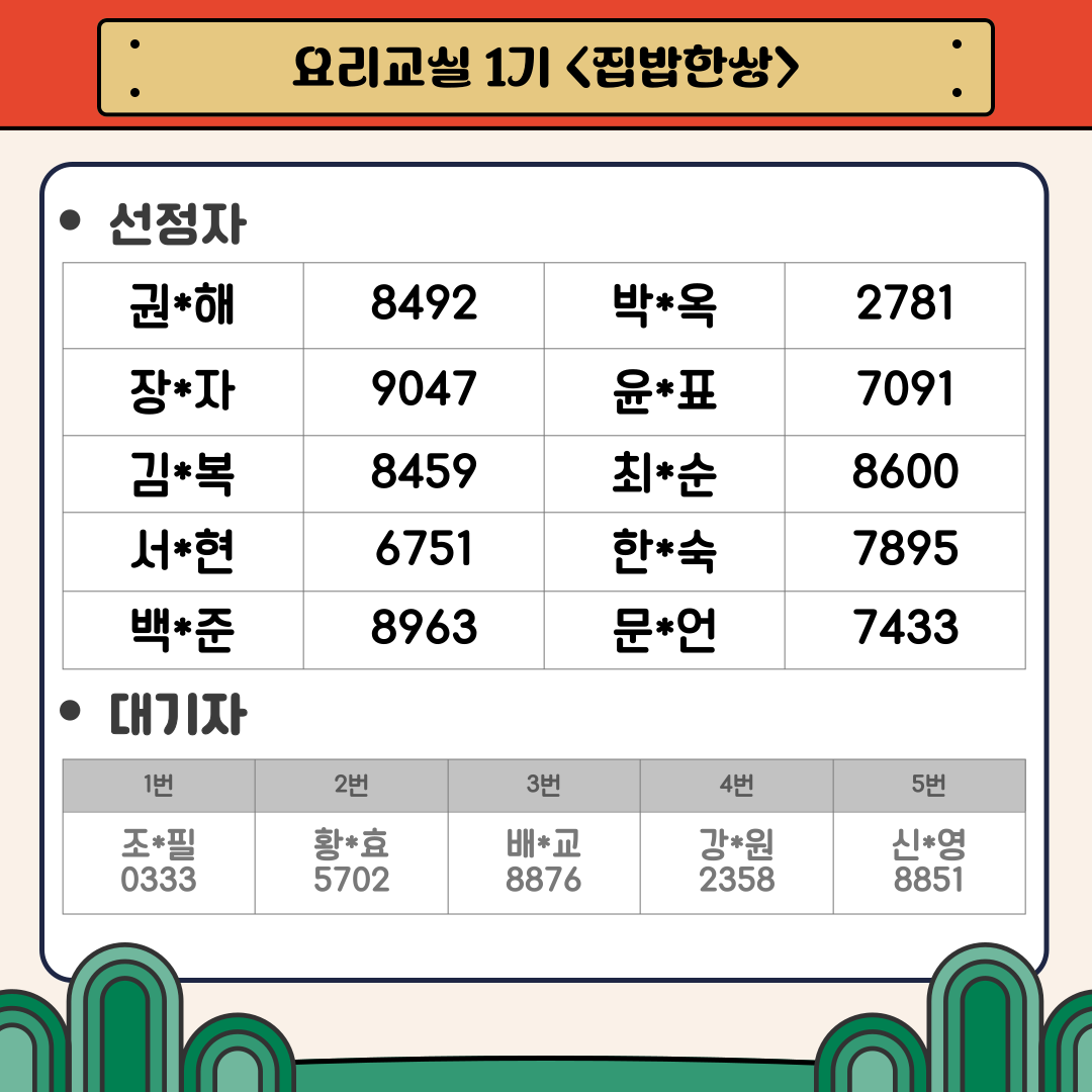 [분관] 2026년 요리교실 1기 선정자 안내