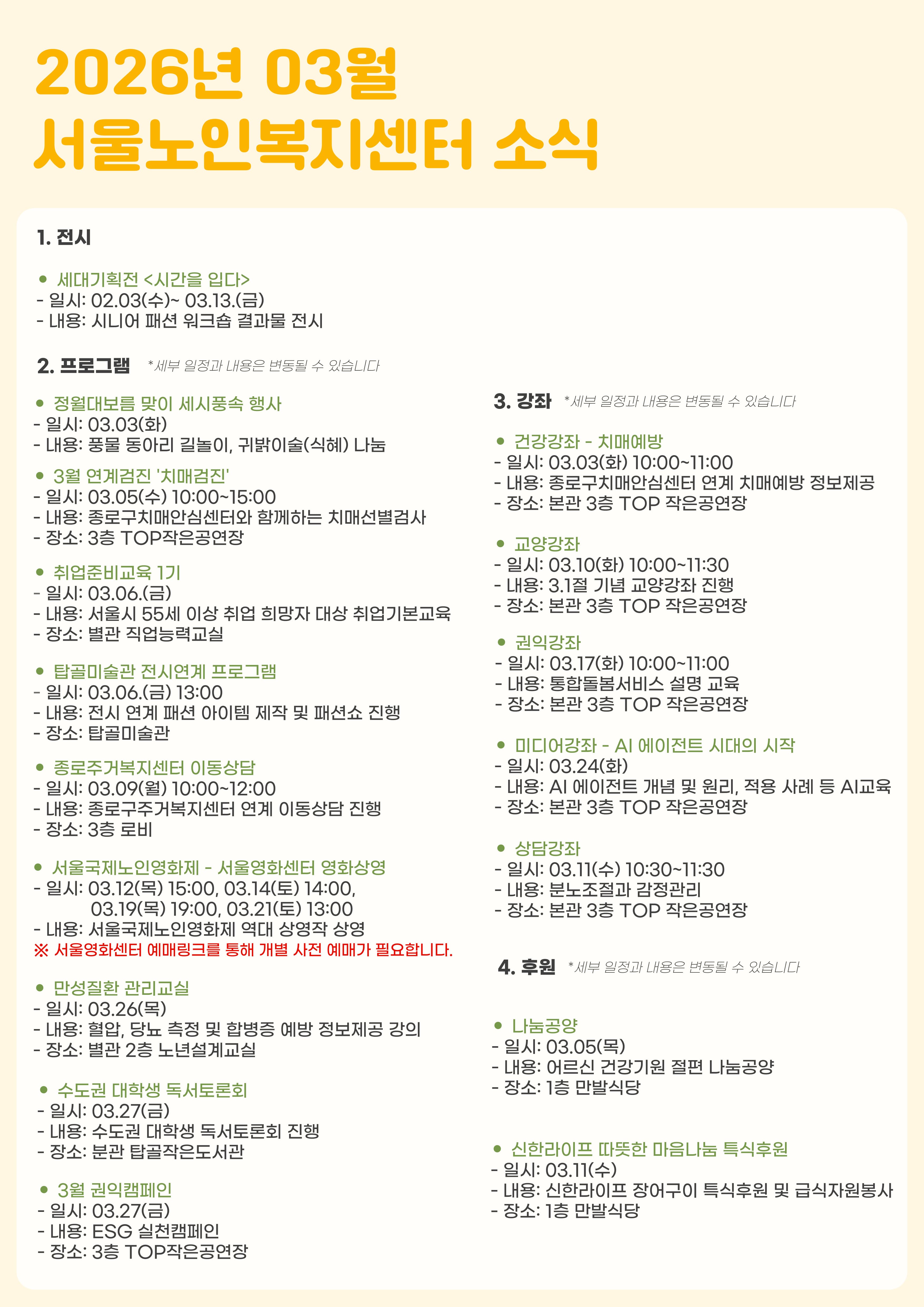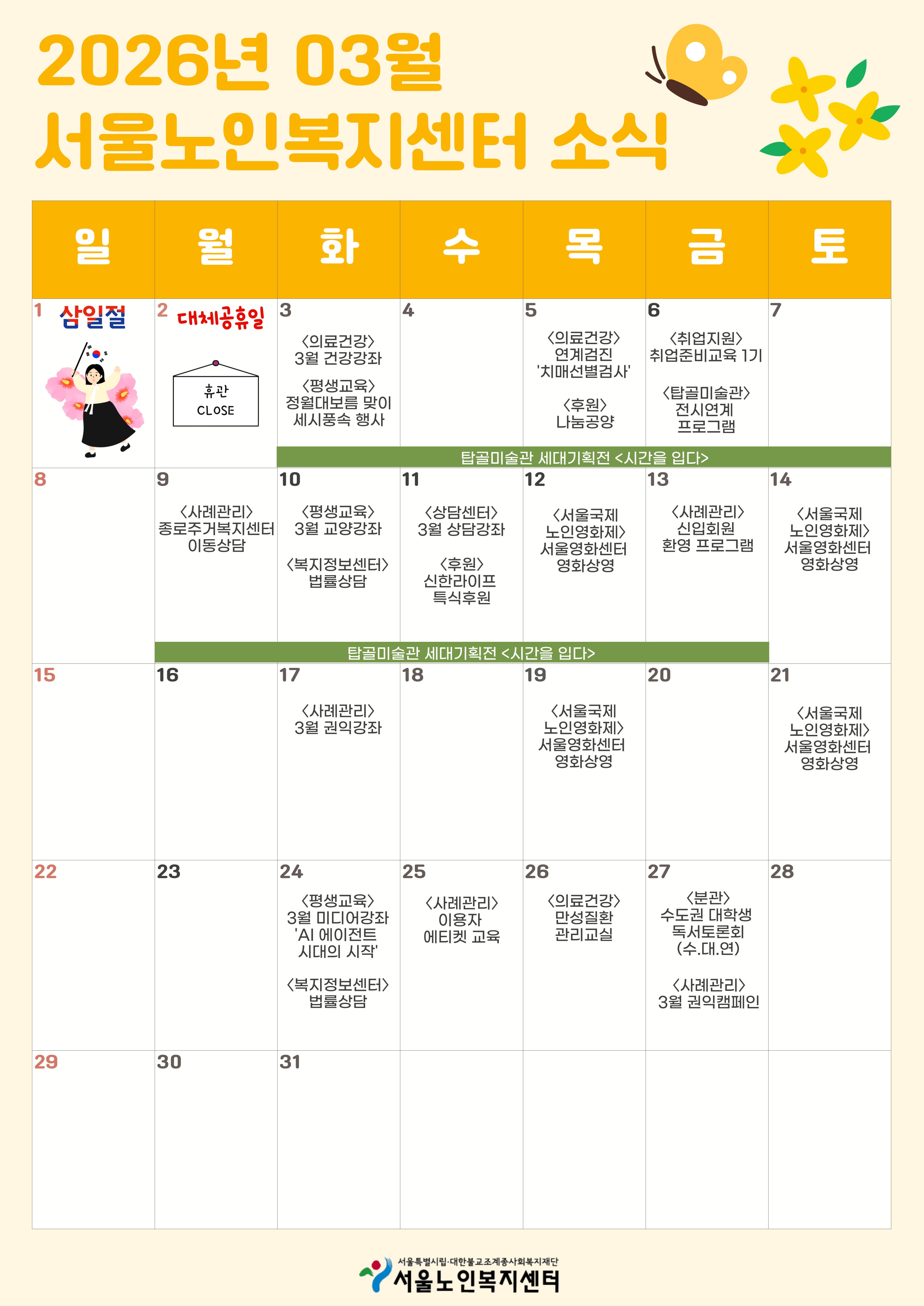 3월 센터 주요일정 안내