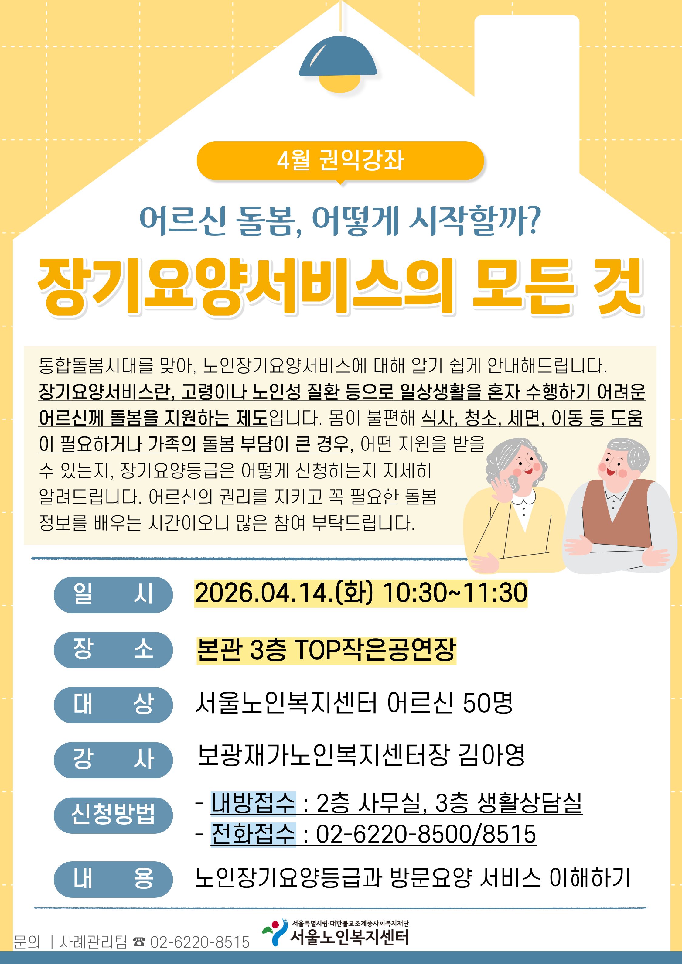 [사례관리팀] 2026년 4월 권익강좌 '장기요양서비스의 모든 것' 참여자 모집