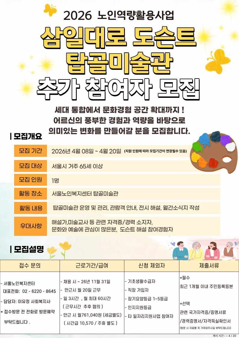 [지역복지팀] 2026 노인역량활용사업 삼일대로도슨트 (탑골미술관) 참여자 추가모집