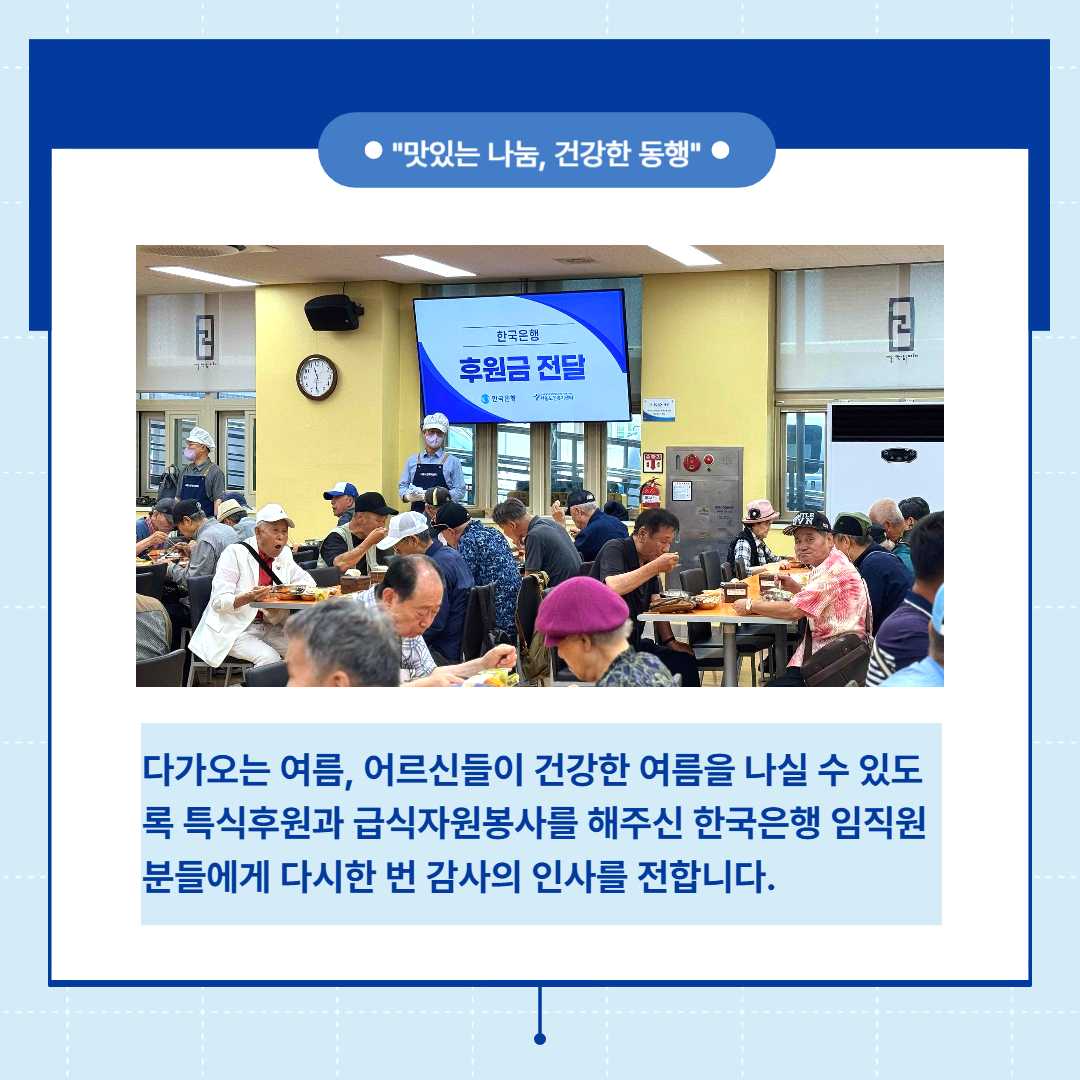 [기획개발팀] 한국은행과 함께 하는 " 건강한 나눔, 건강한 동행" 특식후원