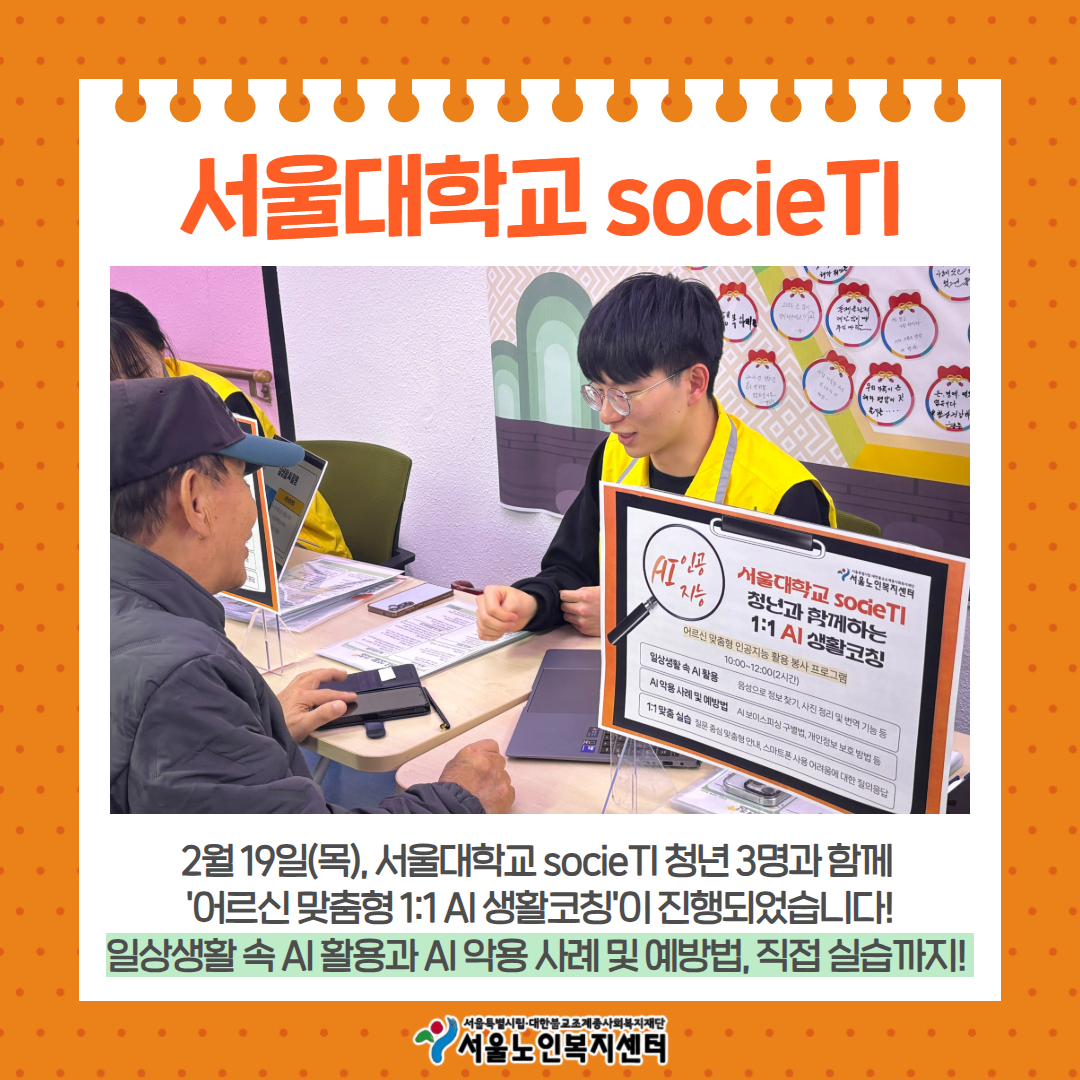 [세대통합팀-재능기부 봉사] 서울대학교 socieTI 청년 봉사자와 함께하는 1:1 AI 생활코칭