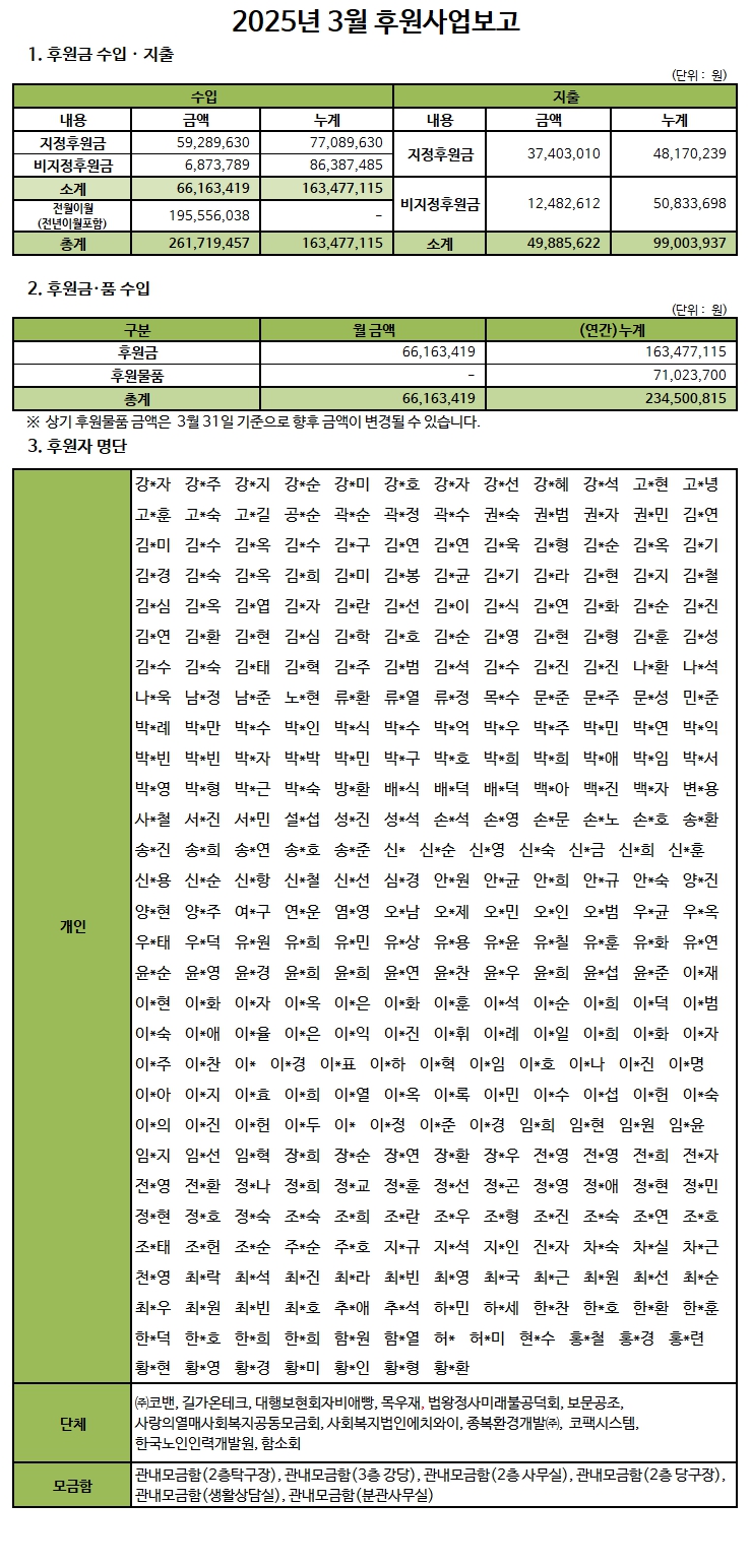 | → | [총무팀] 2025년 3월 후원사업보고 |     | 담당자 | 258 | 2025-04-06 |