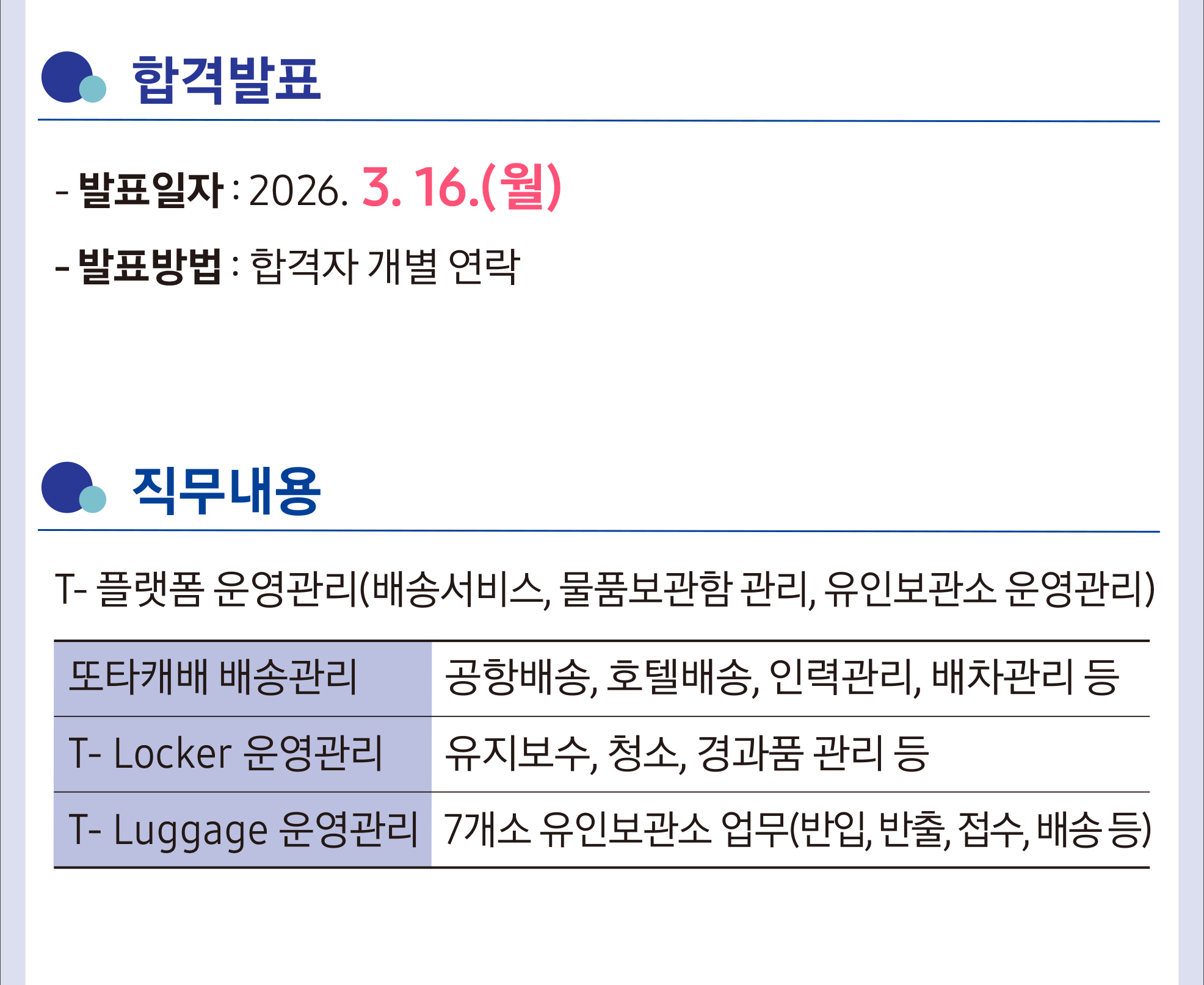 | 직종 | 직종T-플랫폼 배송매니저 |