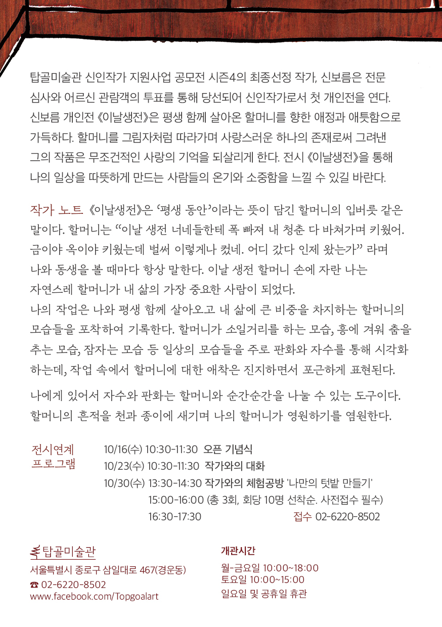 탑골미술관 신인작가 지원사업 신보름 작가 개인전