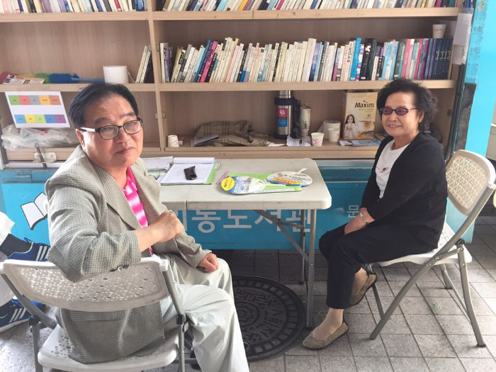 오늘은 '이동도서관 사서도우미' 참여자 어르신들의 탑마을 이동도서관 이야기와 일자리 관련하여 진솔한 이야기를 나누고자 인터뷰를 진행하였습니다. 저를 반갑게 맞아주신 강등자 어르신과 김진규 어르신을 만나 뵙도록 하겠습니다.