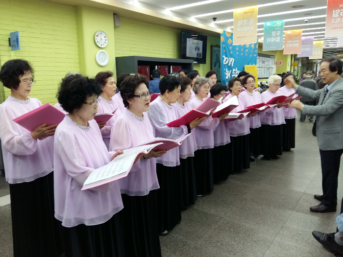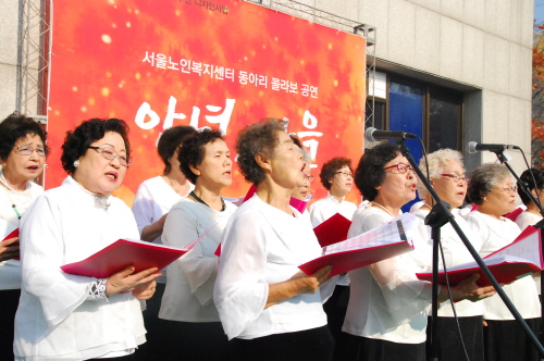 비단처럼 고운 목소리가 입혀진 익숙한 동요에, 센터 회원들은 잠시 눈을 감고 입가에 미소를 띄운다. 동아리 이름처럼 얼굴도 목소리도 아름다운 백합화합창단 어르신들의 깜짝 공연이 시작되었기 때문이다.