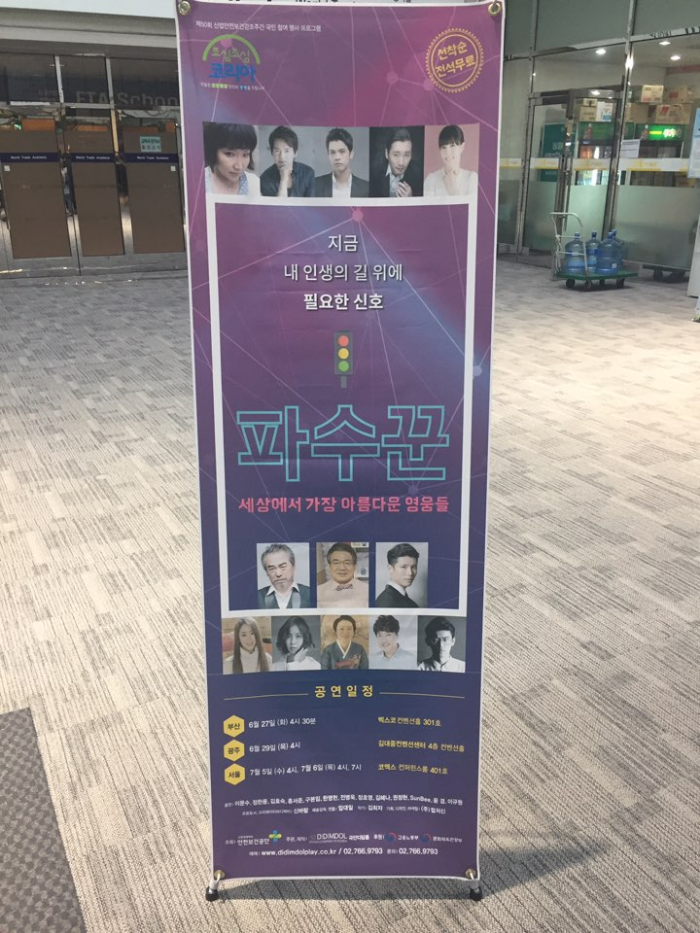지난(6일) 노인사회활동지원사업 공익활동 안전지킴이 참여자분들과 함께 안전음악연극 <파수꾼>을 관람하기 위해 강낭 코엑스를 다녀왔습니다. 안전음악연극 <파수꾼>은 '안전'에 대하여 딱딱하고 지루한 이론교육 보다는 연극을 통하여 안전교육형태가 조금 다르게 바뀌면 좋겠다는 생각과 더불어 재미와 감동에 메세지를 전하기 위해 극단 디딤돌 대표님께서 팀을 결성해 만든 작품이라고 합니다.
