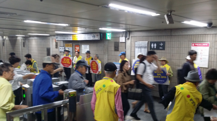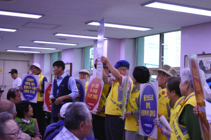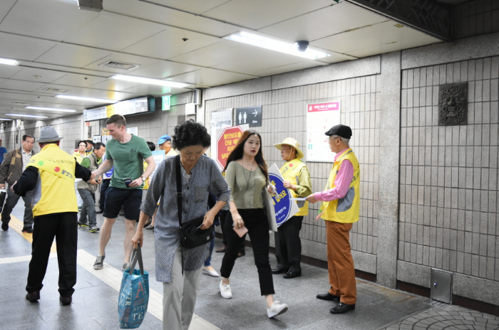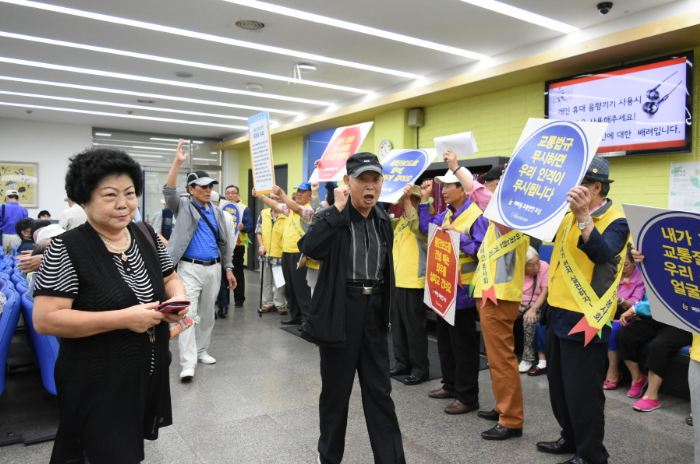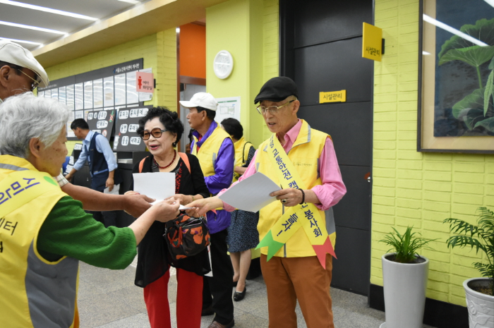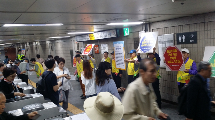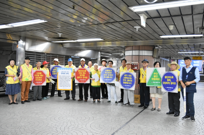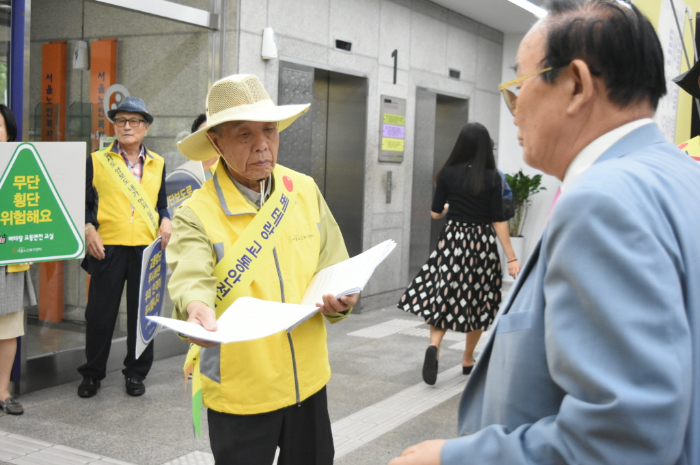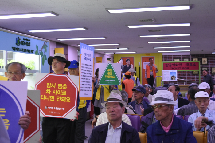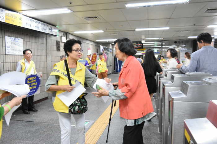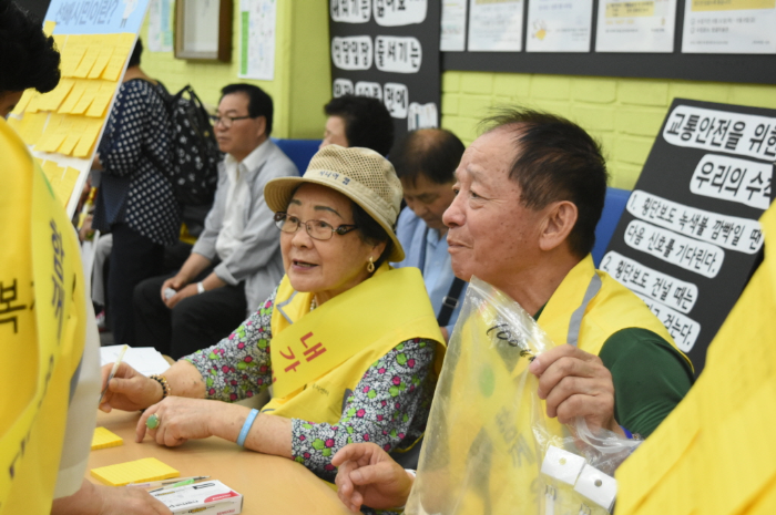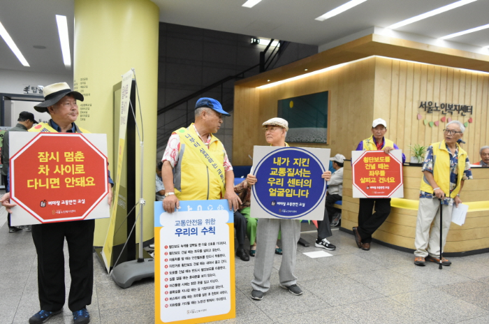 2017.08.31 서울노인복지센터 교통안전 베테랑교실 참여 어르신과 선배시민, 총명학교 1기 어르신이 함께 모여 배려하는 선배시민 문화 확산과 교통안전 중요성을 알리기 위한 인식개선 캠페인을 진행였다.